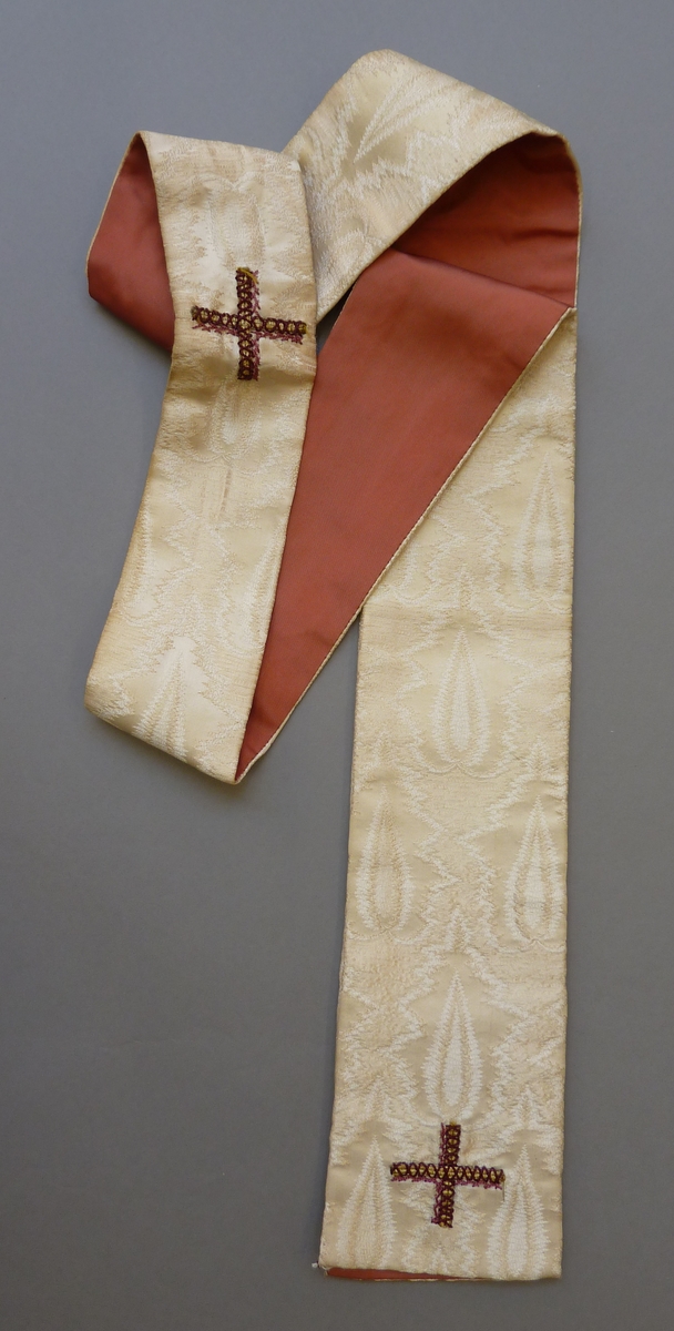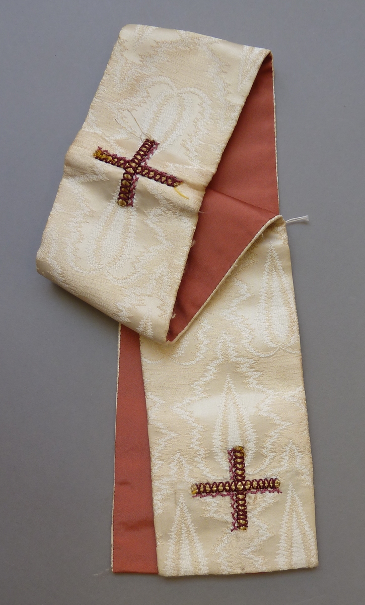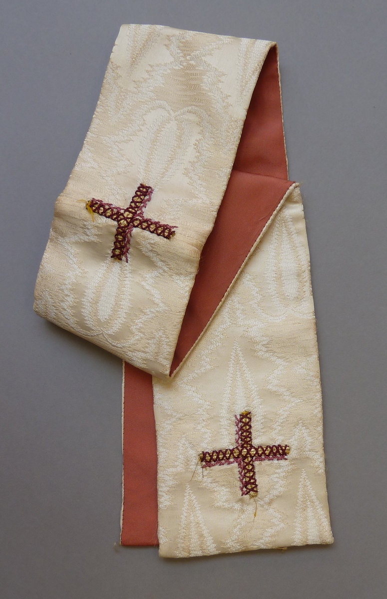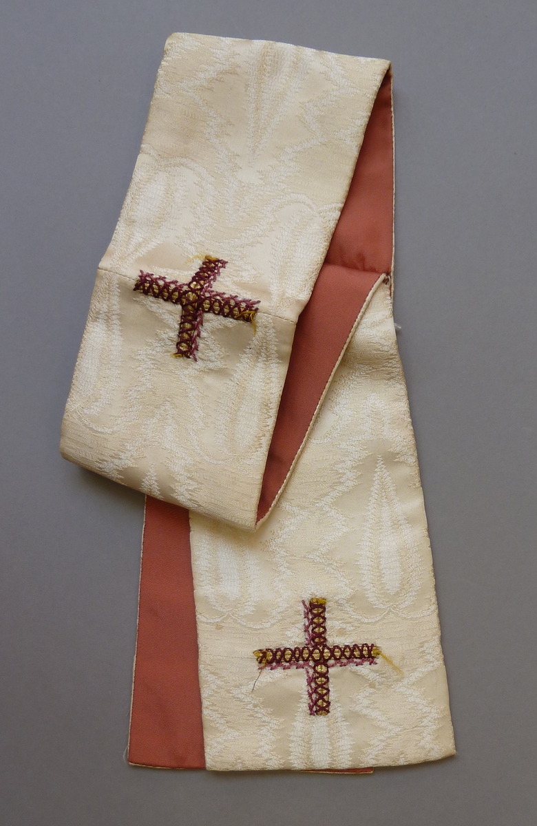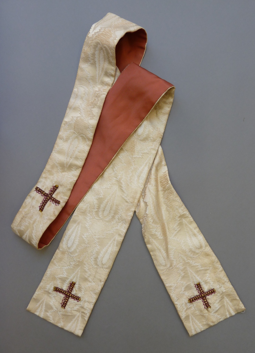 Witte manipel met ingeweven vlammotief, goud-paarse ...