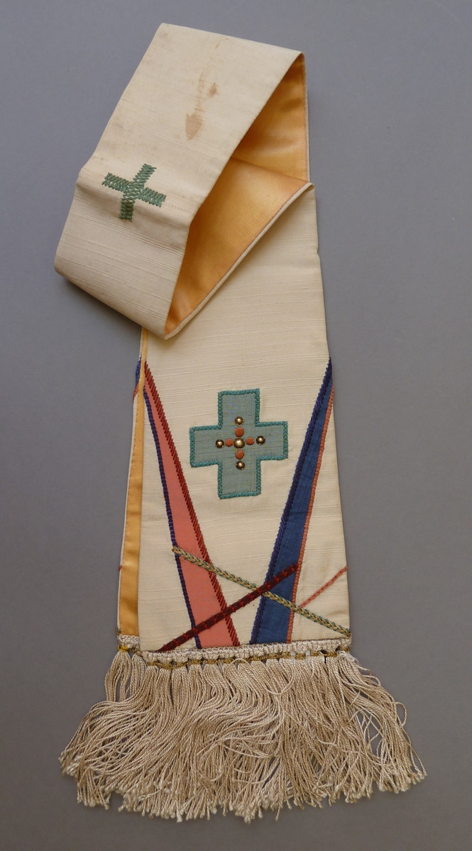 Witte manipel met oranje kruisje en franje