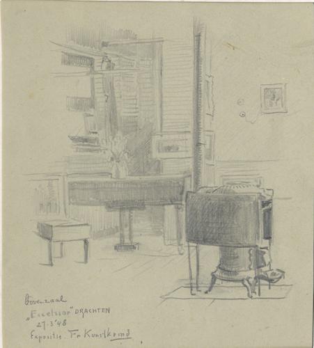 Tekening van de Bovenzaal van "Excelsior" in Drachten