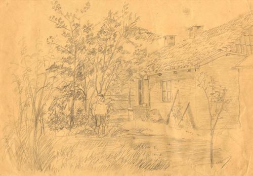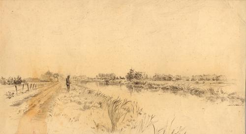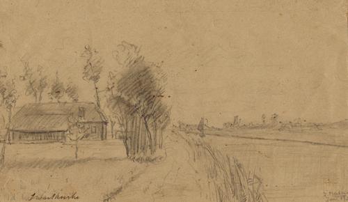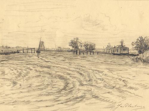 Tekening van de houtzaagmolen aan het Oosteinde te D...