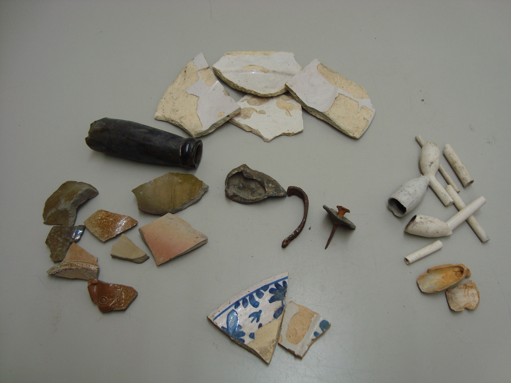 Fragmenten, steengoed/aardewerk/ijzer/glas/lood,