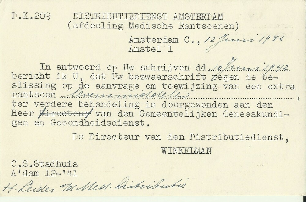 Distributiestamkaart op naam van Teekes echtgenote v...