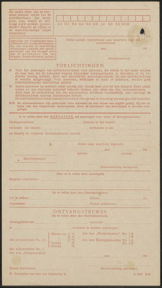 Formulier "Aanvraagformulier voor een schoenenbon", ...