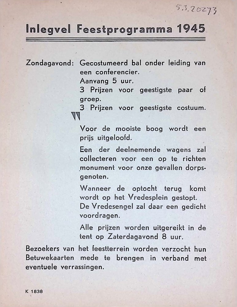 Inlegvel feestprogramma 1945. K. 1838. Het zou gaan ...