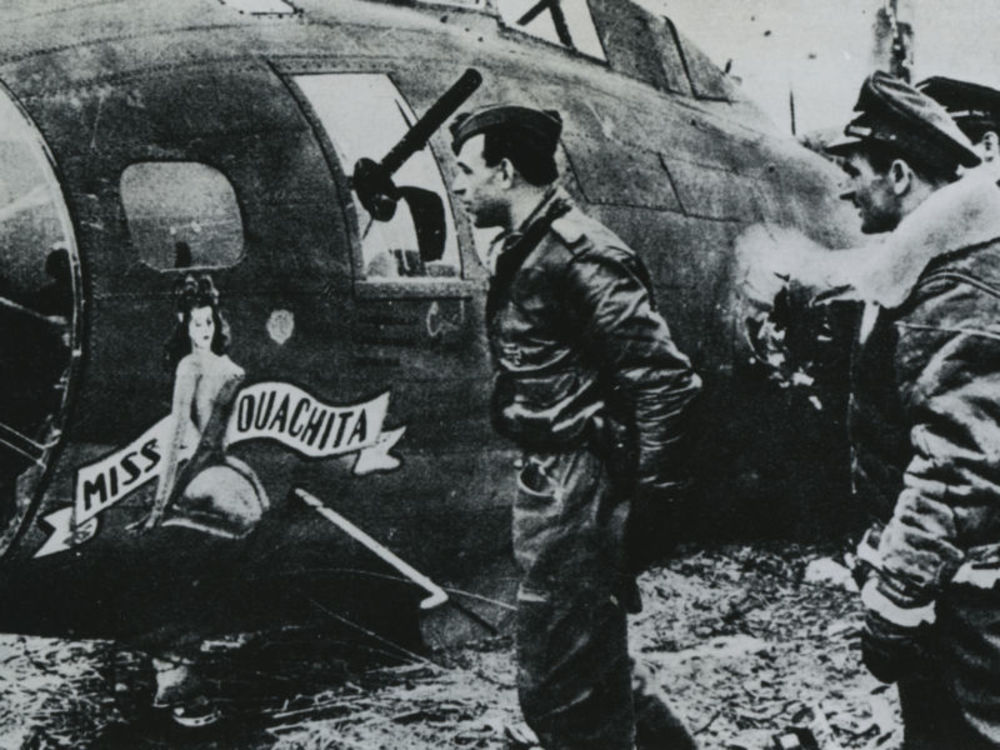 Foto Boeing B-17F die een buiklanding heeft gemaakt....