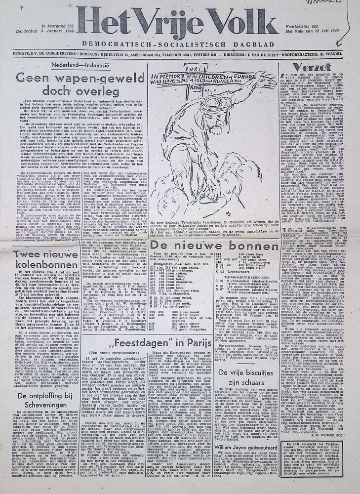 Het Vrije Volk, 3 januari 1946, 1e jaargang no 203