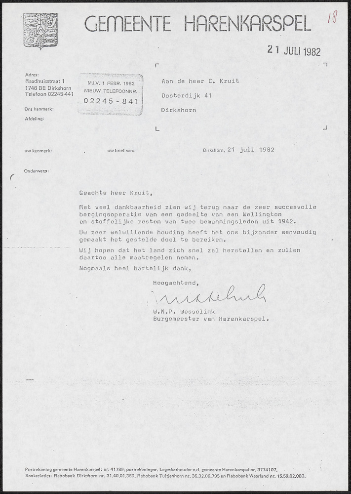 Brief, gemeente Veenendaal 10 oktober 1945.