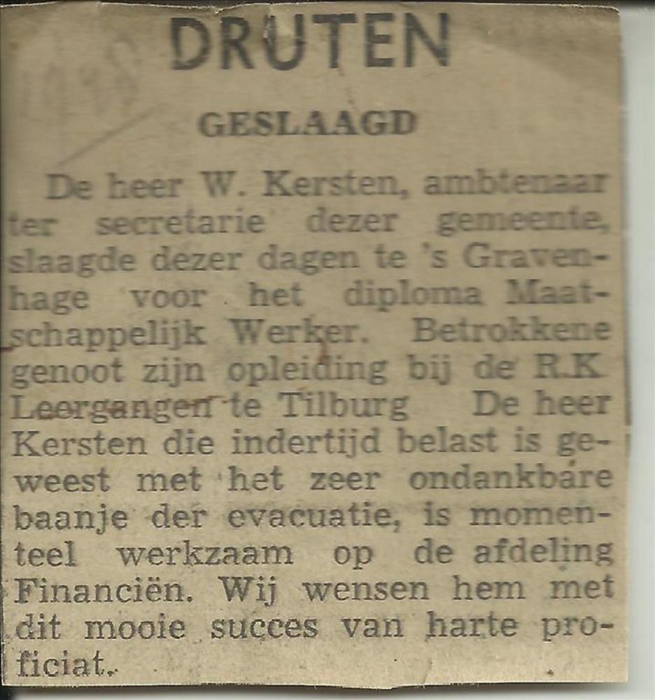 Dhr W.H.M. Kersten geslaagd voor het diploma Maatsch...