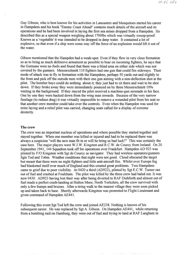 RAF career of Cecil de Courcy and his fellow crewmem...