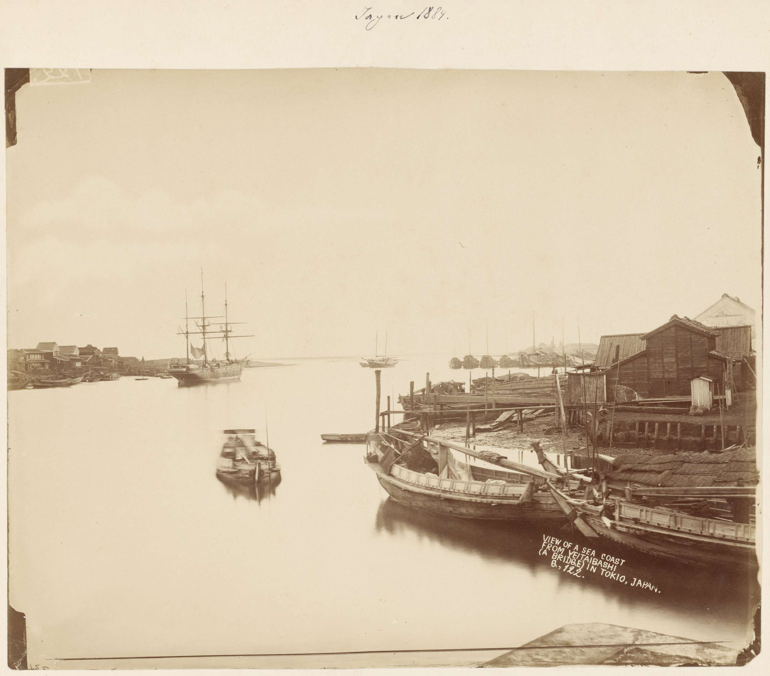 Gezicht op de Shakujii vanaf de Itabashibrug in Naka...
