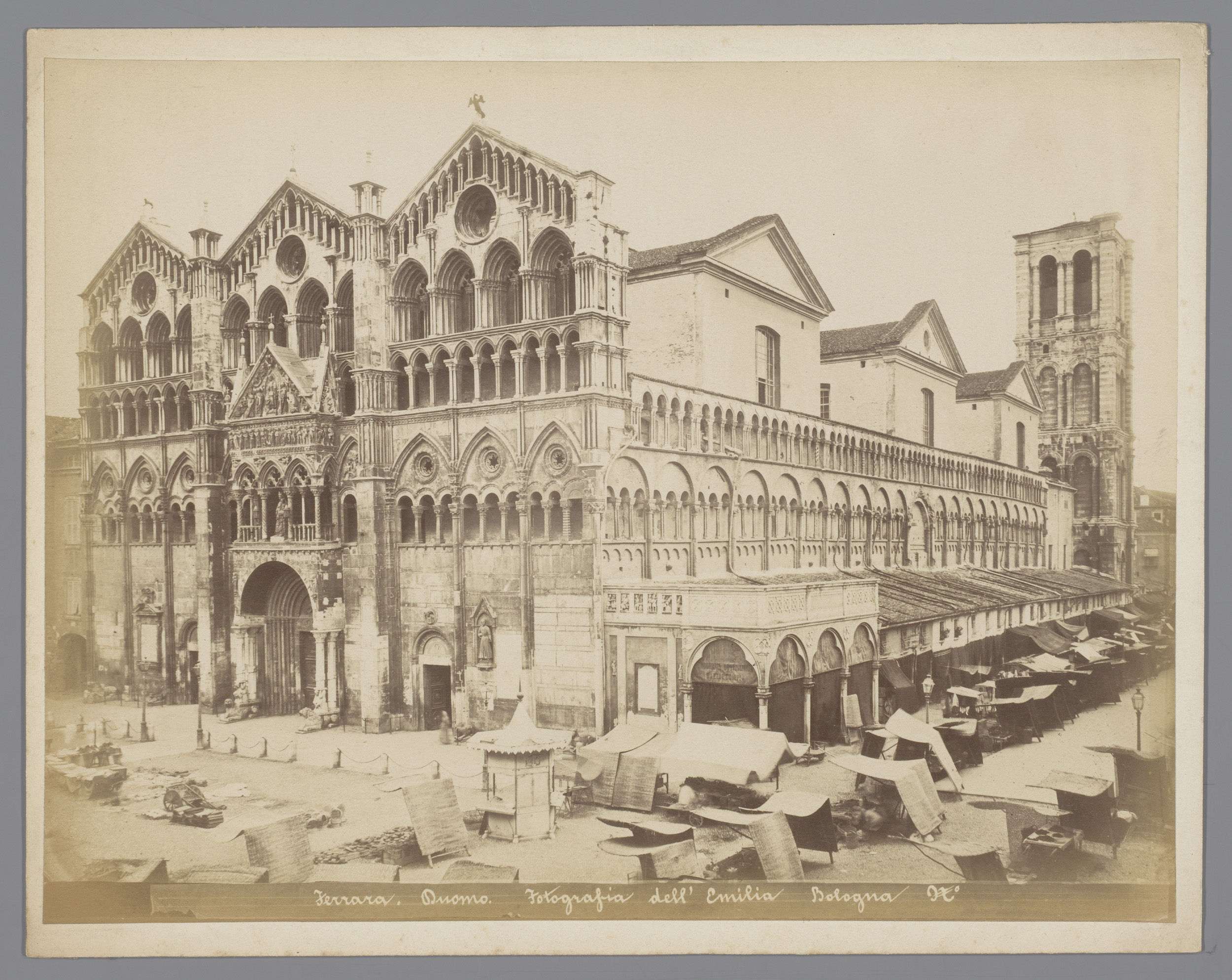 Gezicht op de westgevel van de kathedraal te Ferrara...