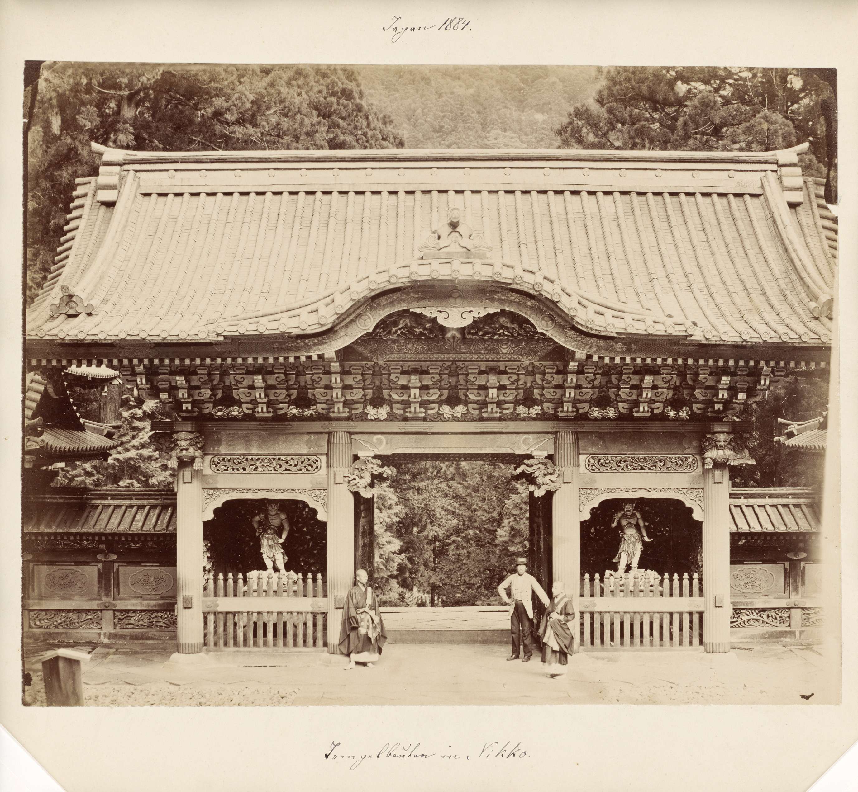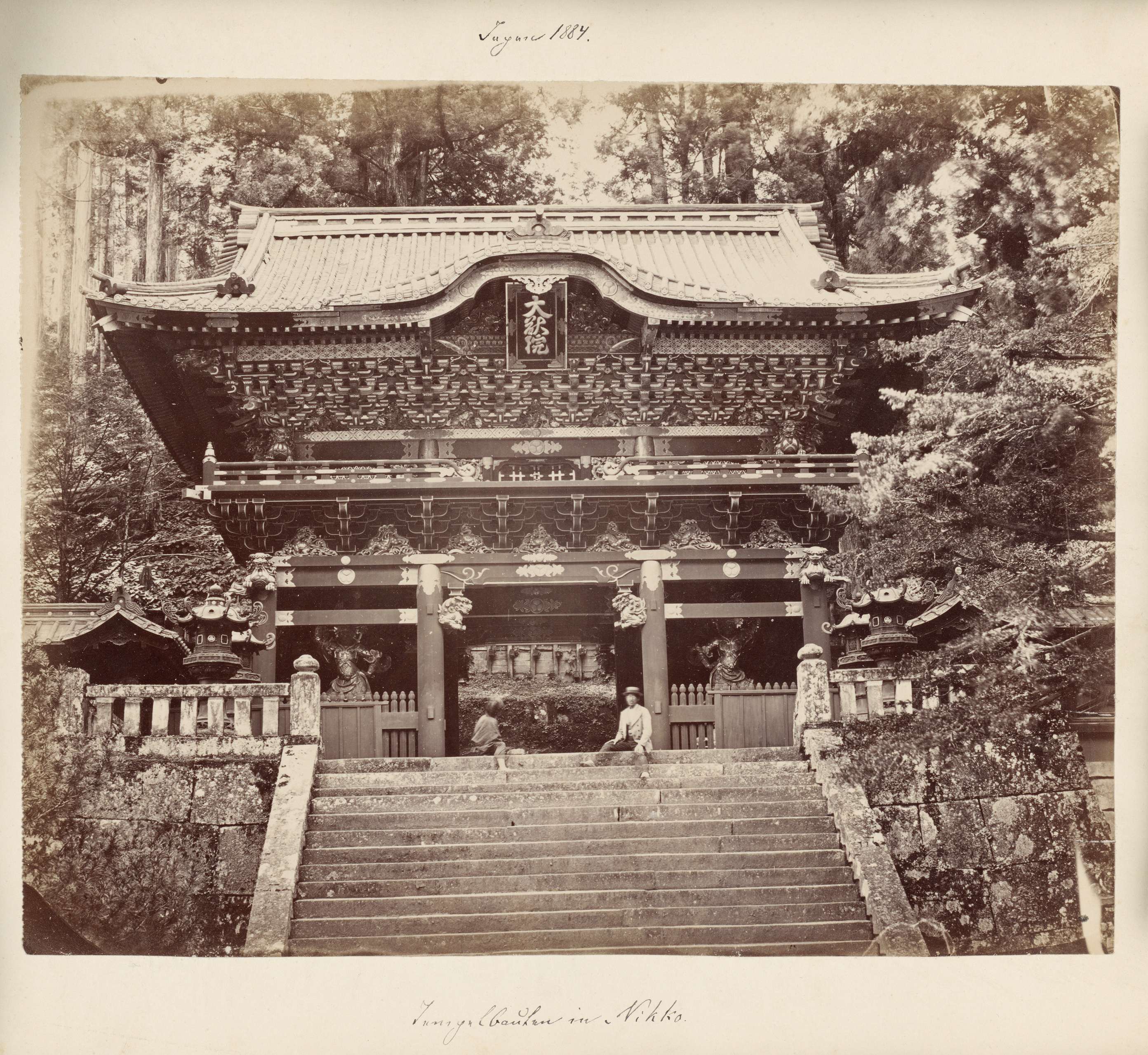 Gezicht op de Taiyū-in Reibyō Nitemmon op het tempel...