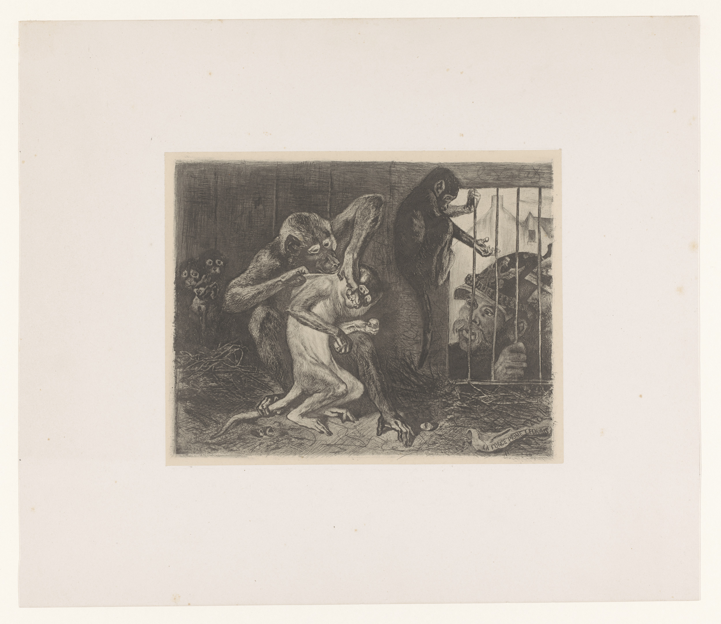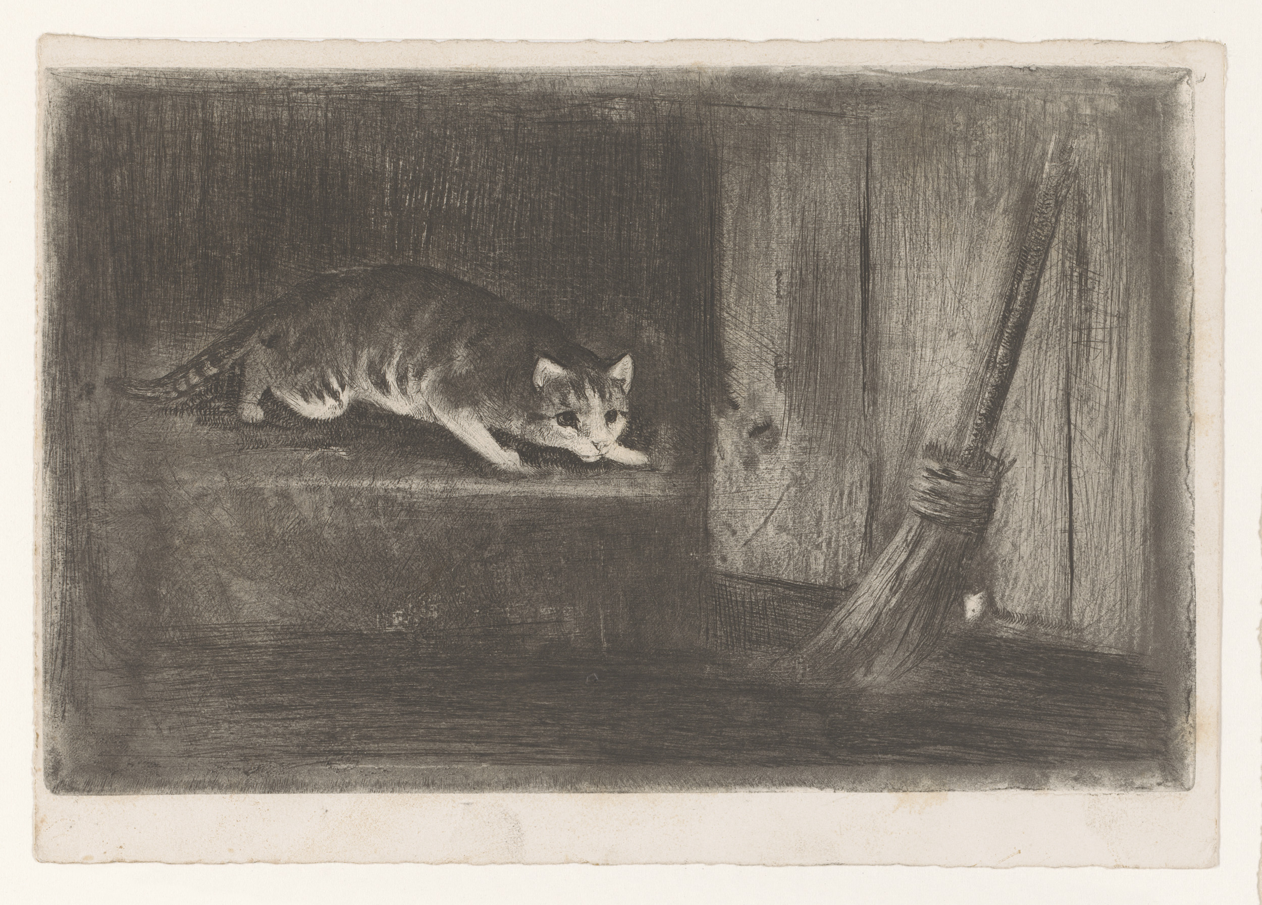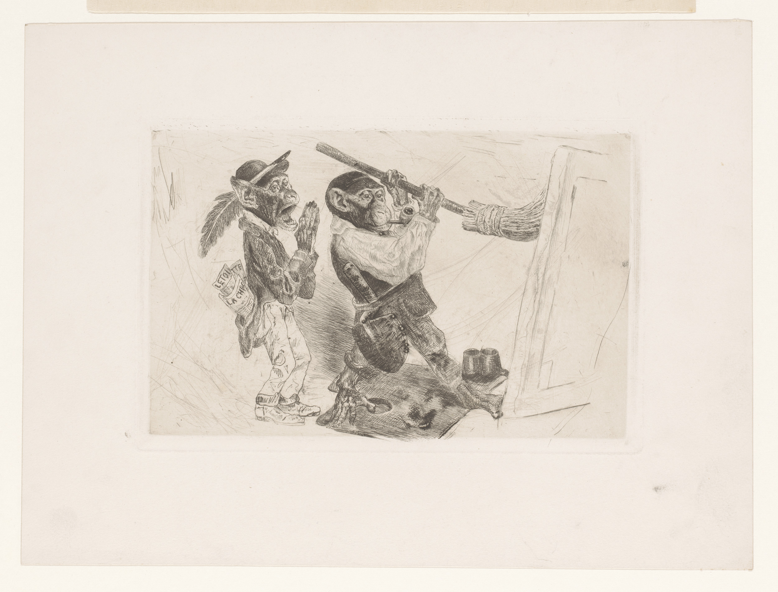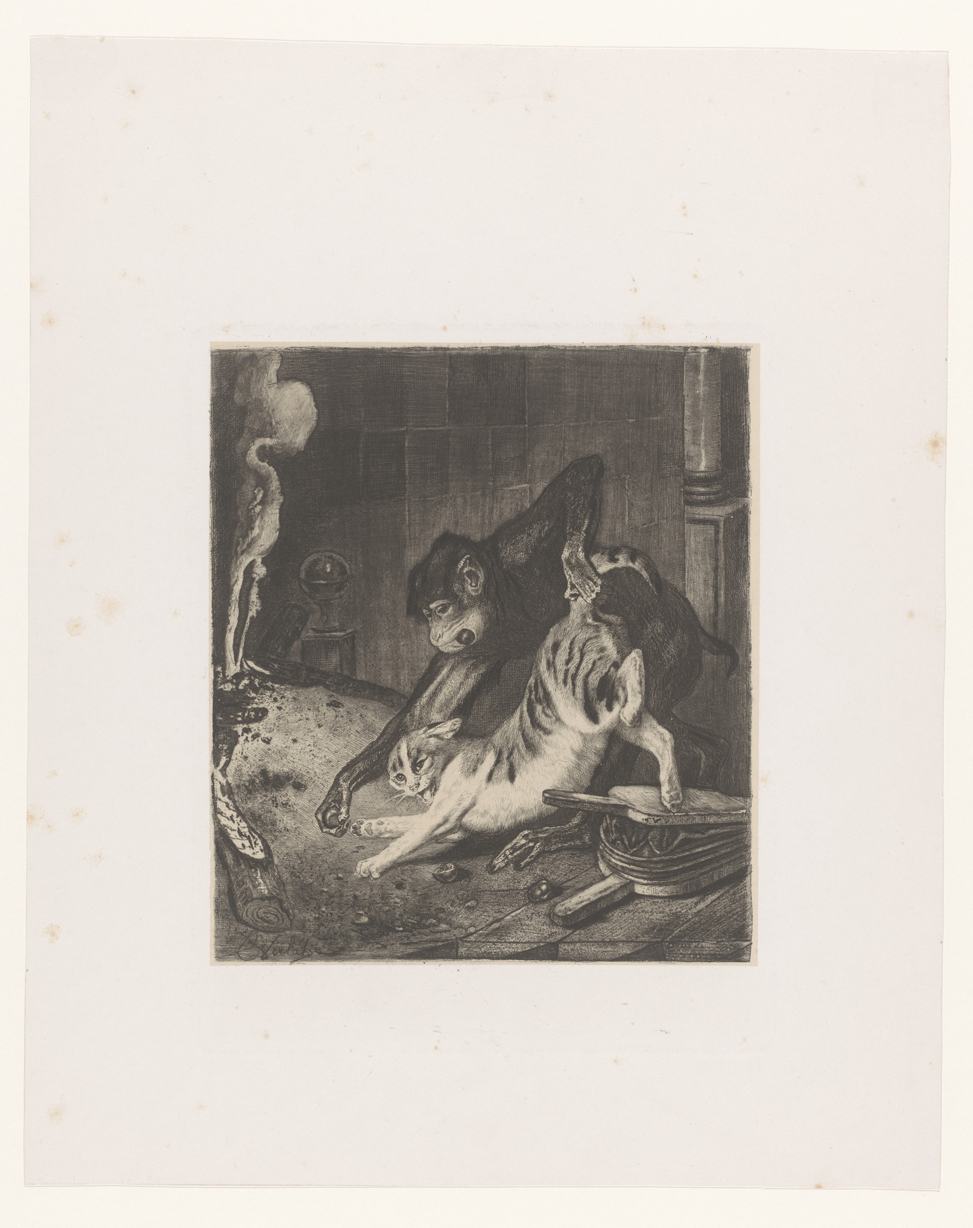 Aap dwingt een kat de kastanjes uit het vuur te halen
