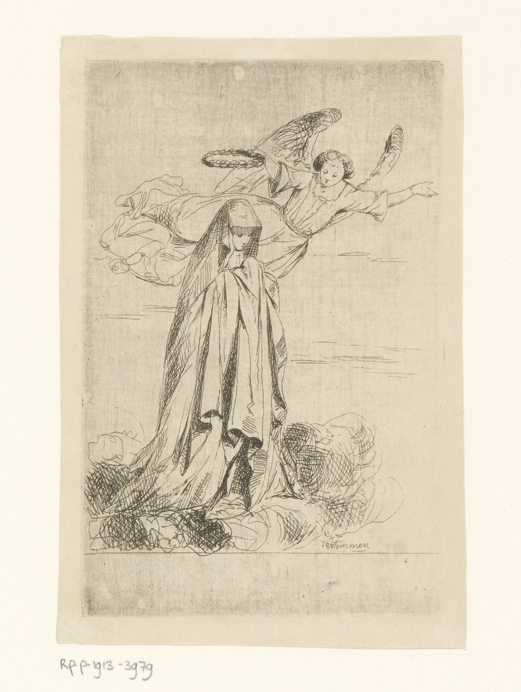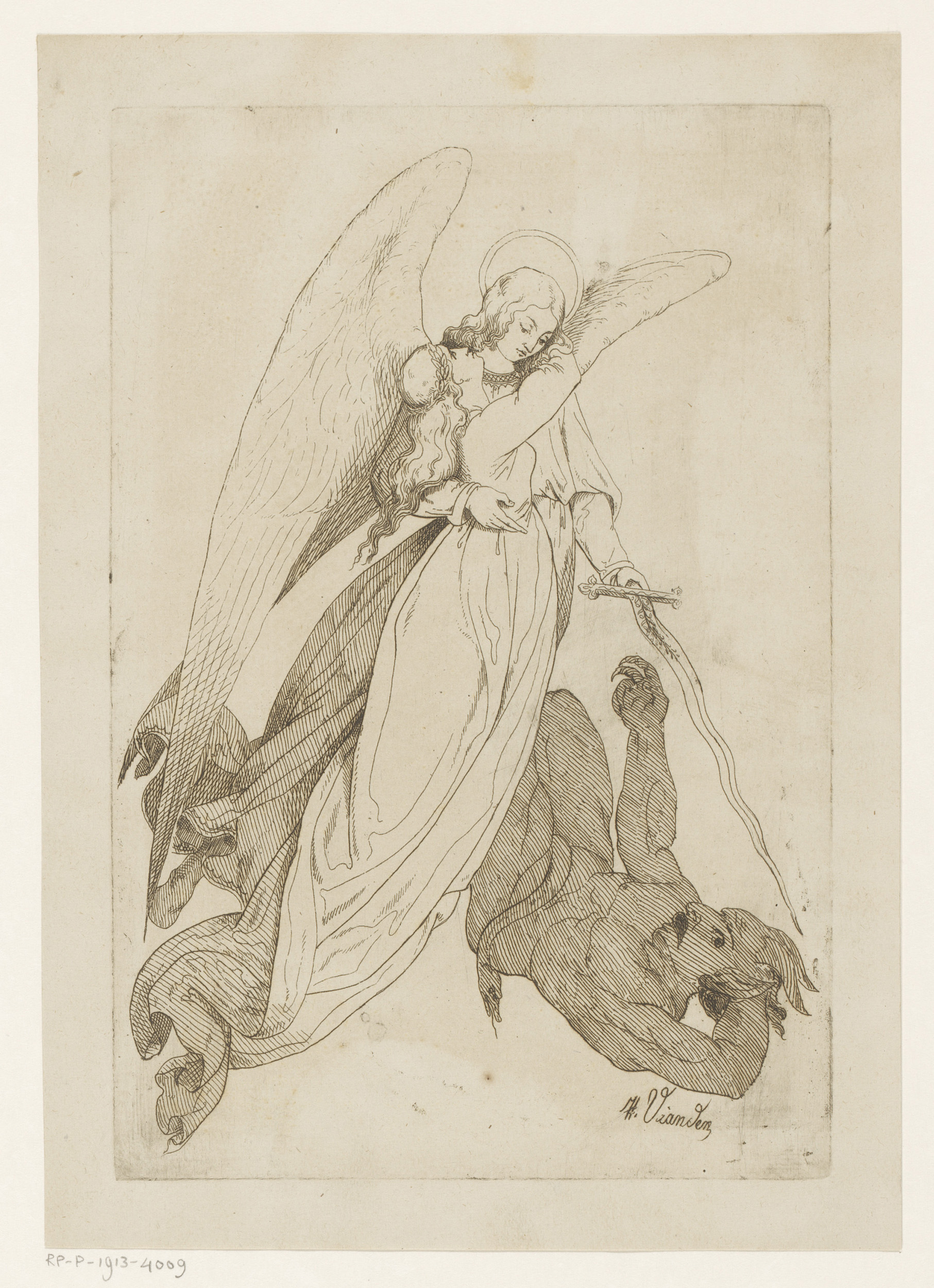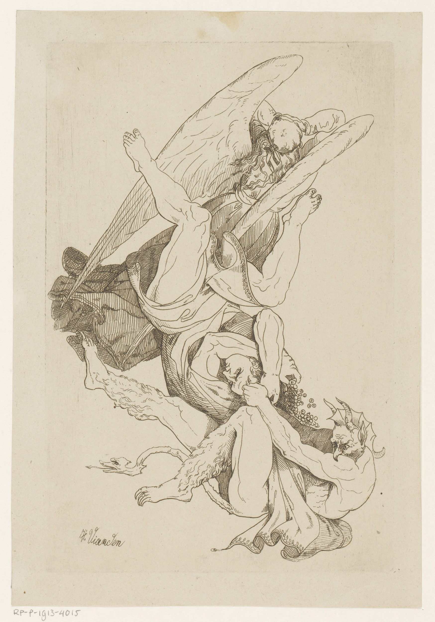 Engel tilt een vrouwelijke heilige en verslaat een d...