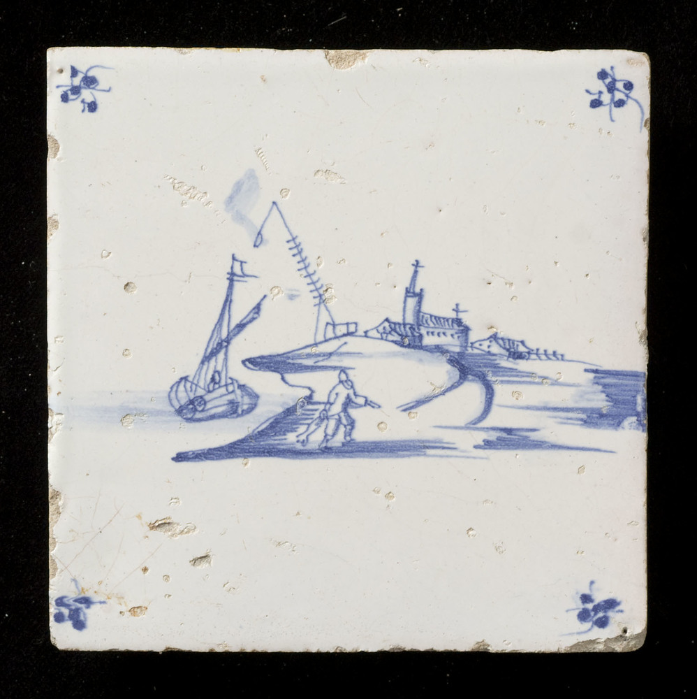 Tegel van keramiek, tinglazuur, voorstellende een la...