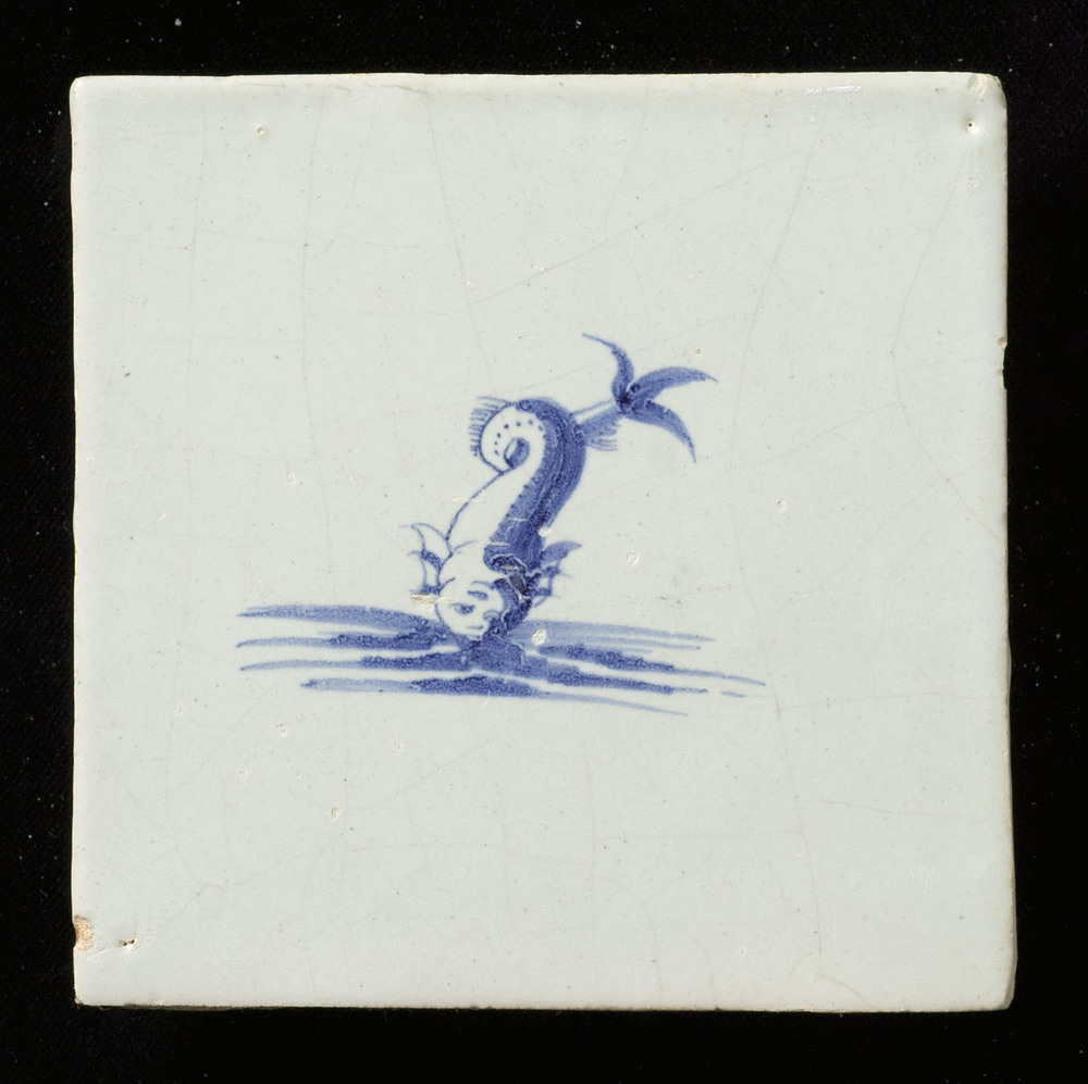 Tegel in tinglazuur, voorstellende vis, gemaakt in N...