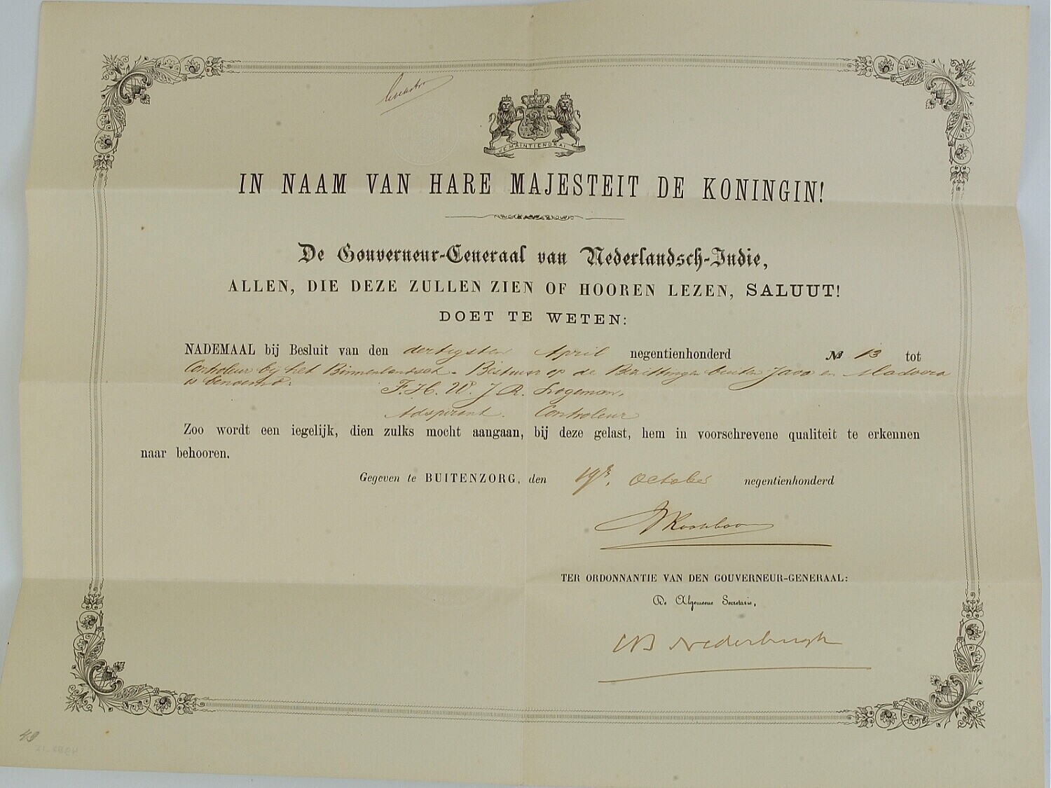 Aanstellingsbrief van F. H. W. J. R. Logeman tot con...