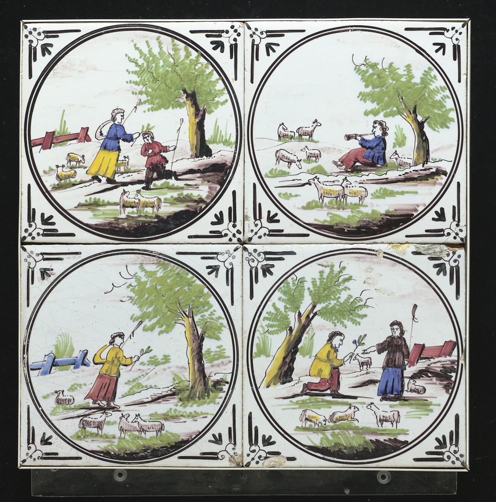 Tegelveld van keramiek, tinglazuur, voorstellende he...