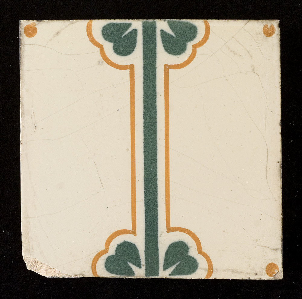 tegel van keramiek met engobe, voorstellende: geomet...
