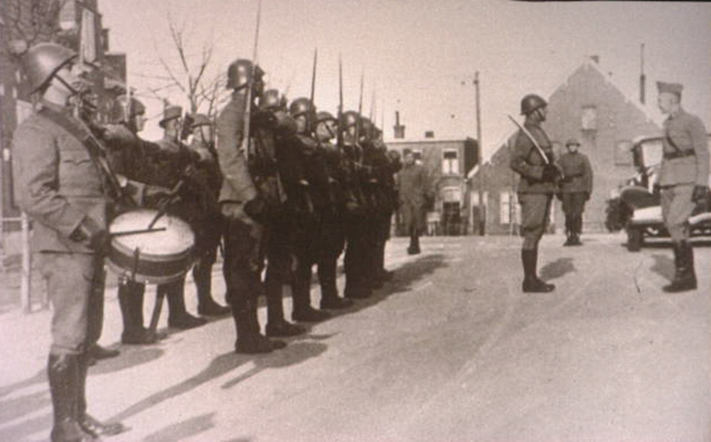 Oorlog Mobilisatie Beëdiging van vaandrig G.C.J.A Me...