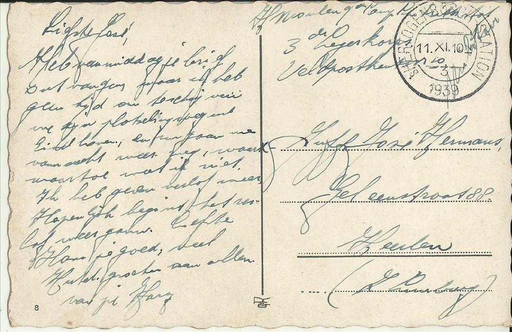 Briefkaart aan de dpl sld Scholtes I-II 14 R.I. Veld...