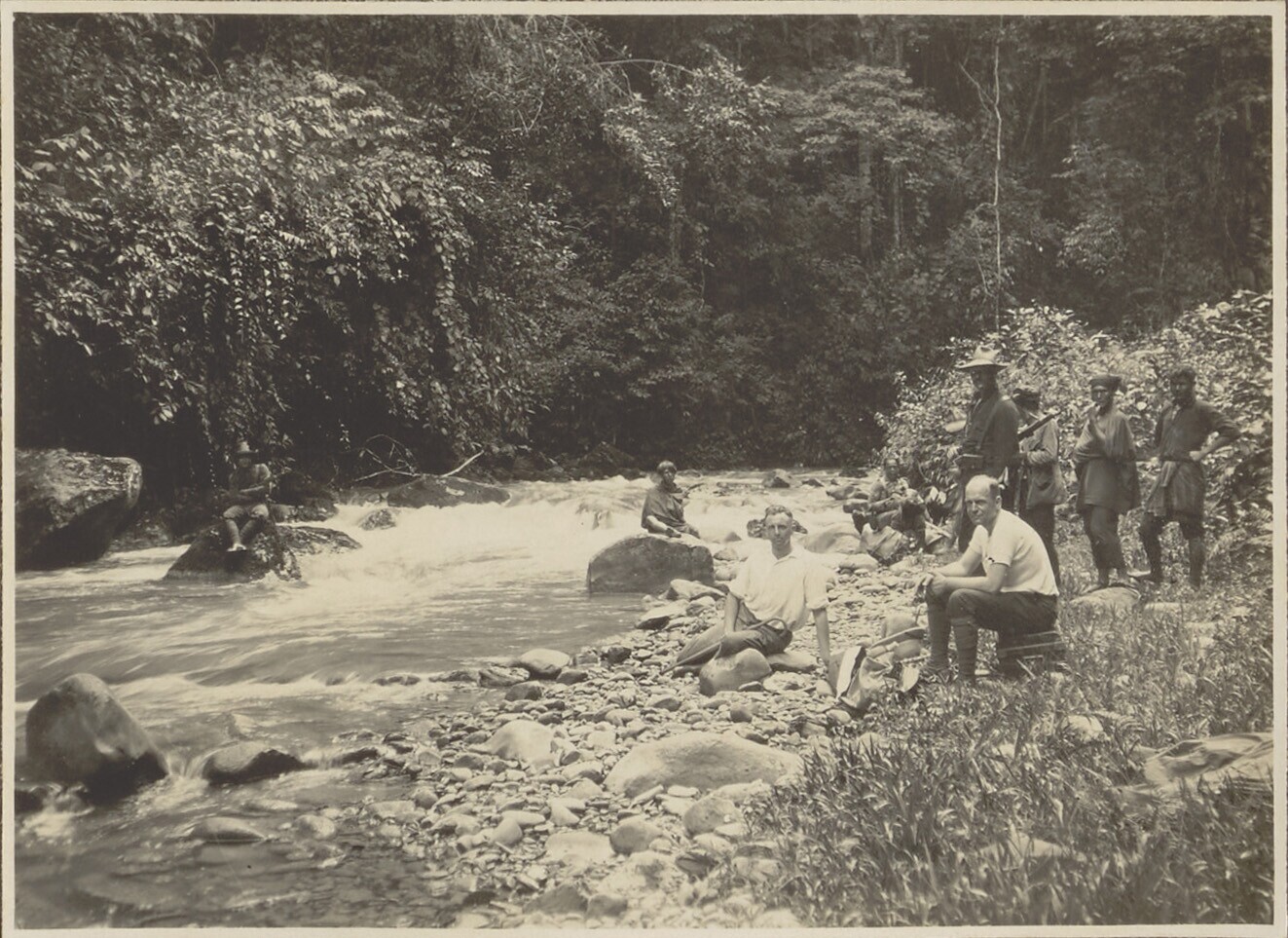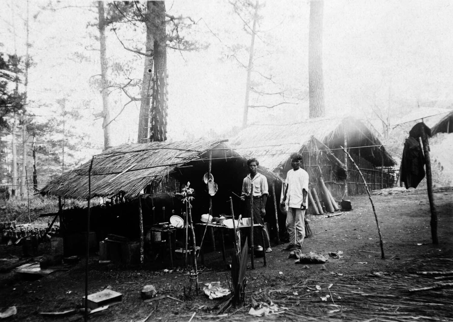 Houtvesters en dragers in een bivak in de Isak-valle...