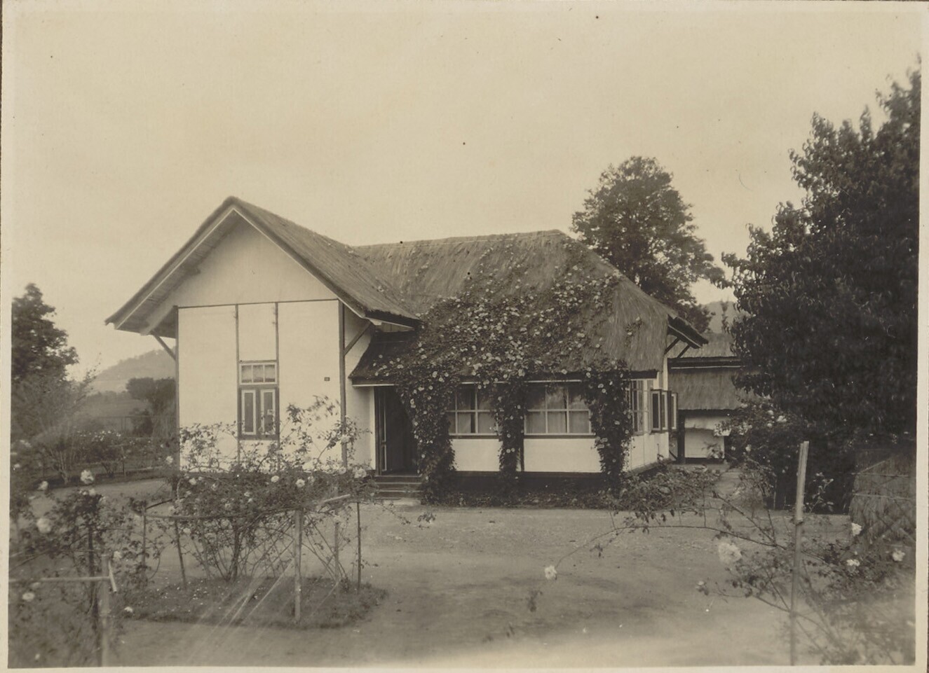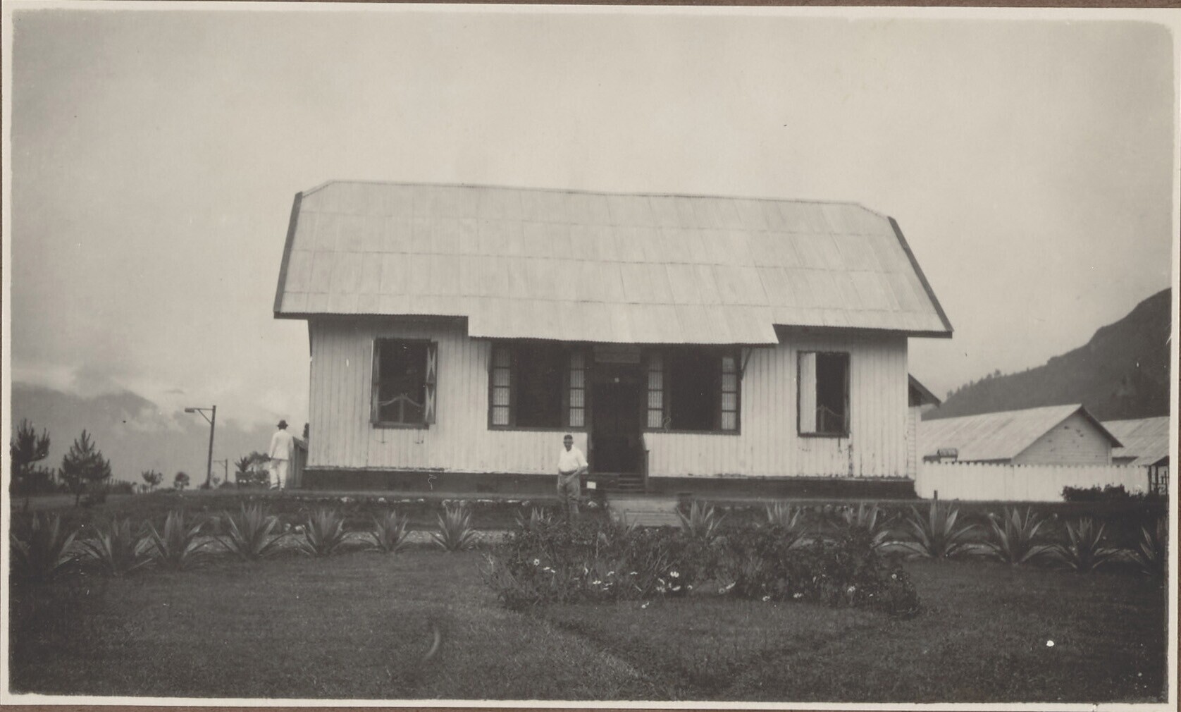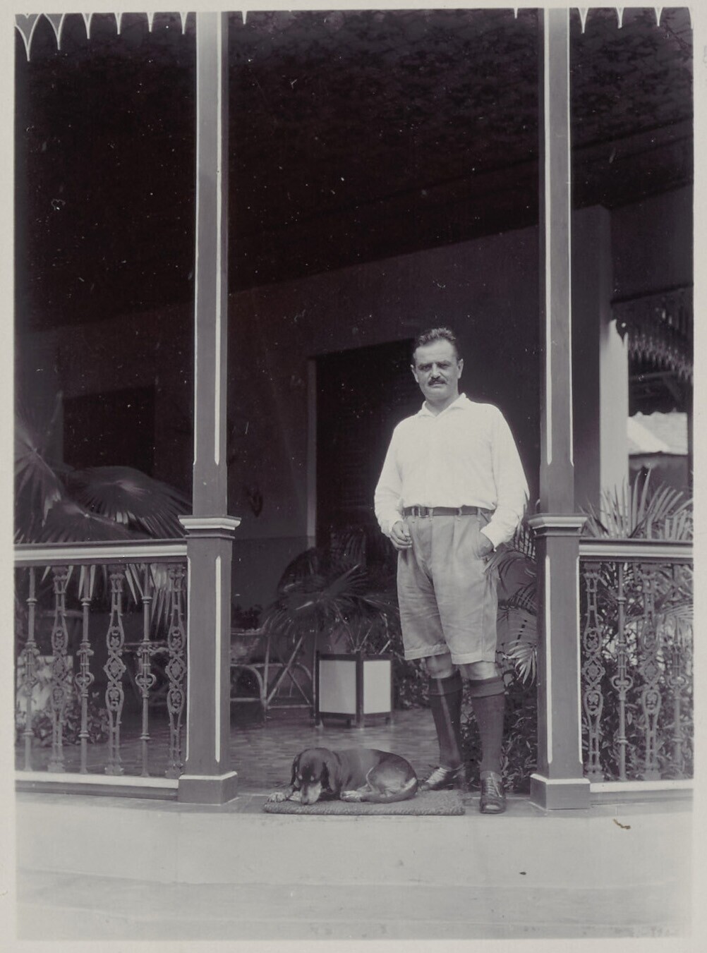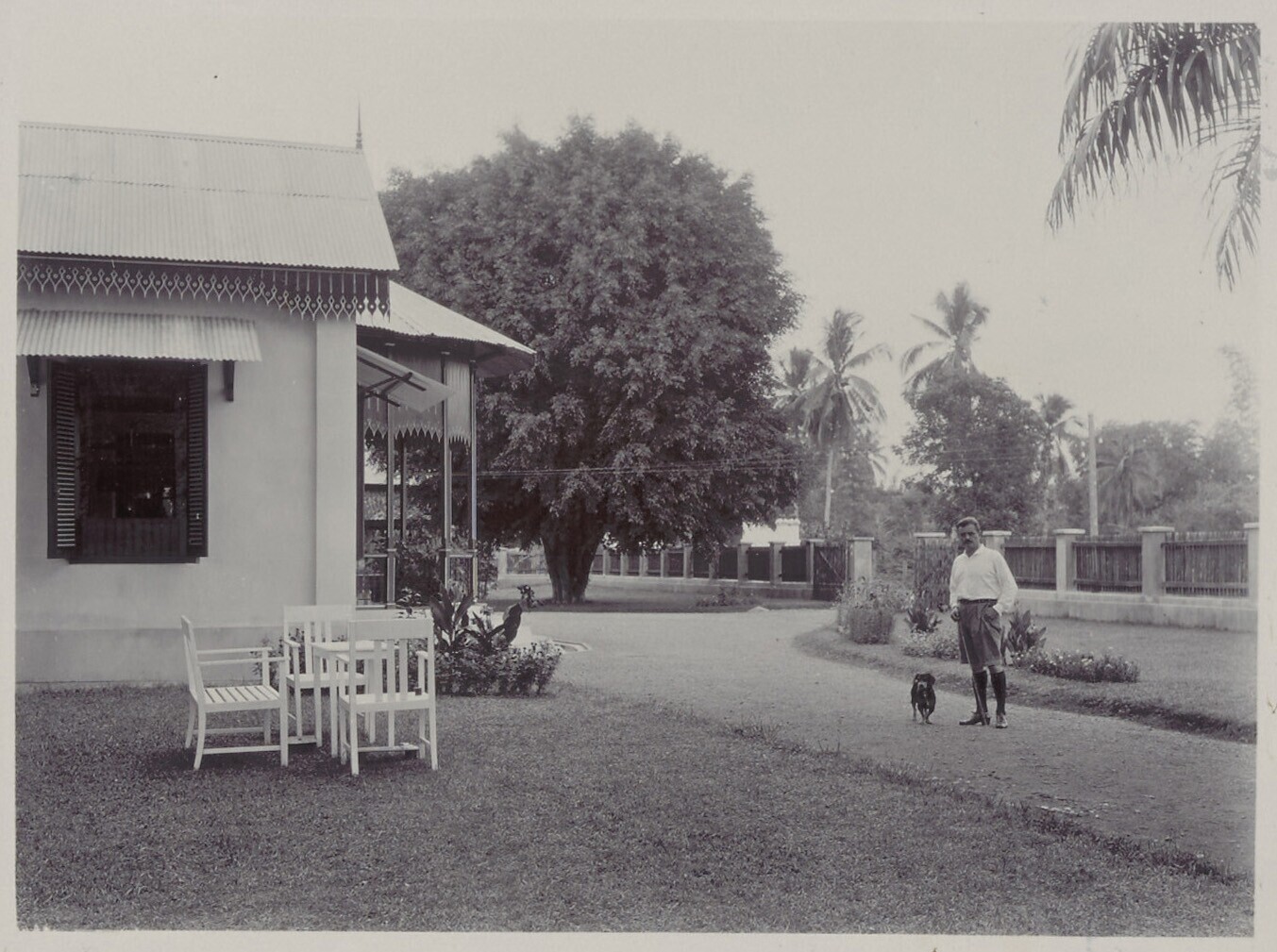 Opperhoutvester S. May met hond in de tuin, Kebonhardjo