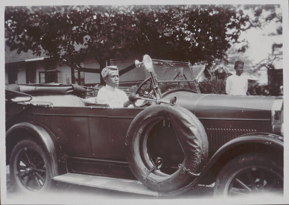 Chauffeur Sastro in de auto van de familie C.H. Japing