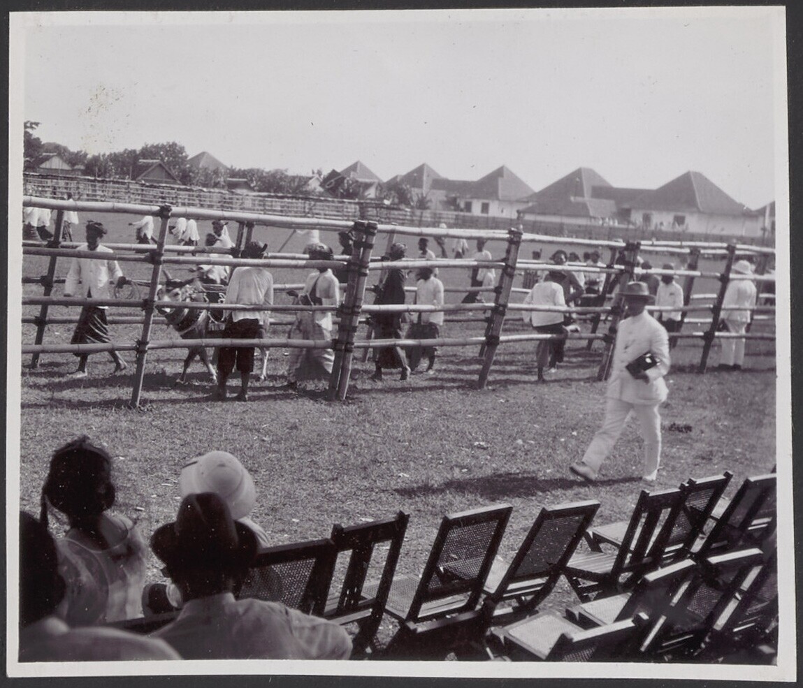 Javaanse toeschouwers en dansers op het volksfeest