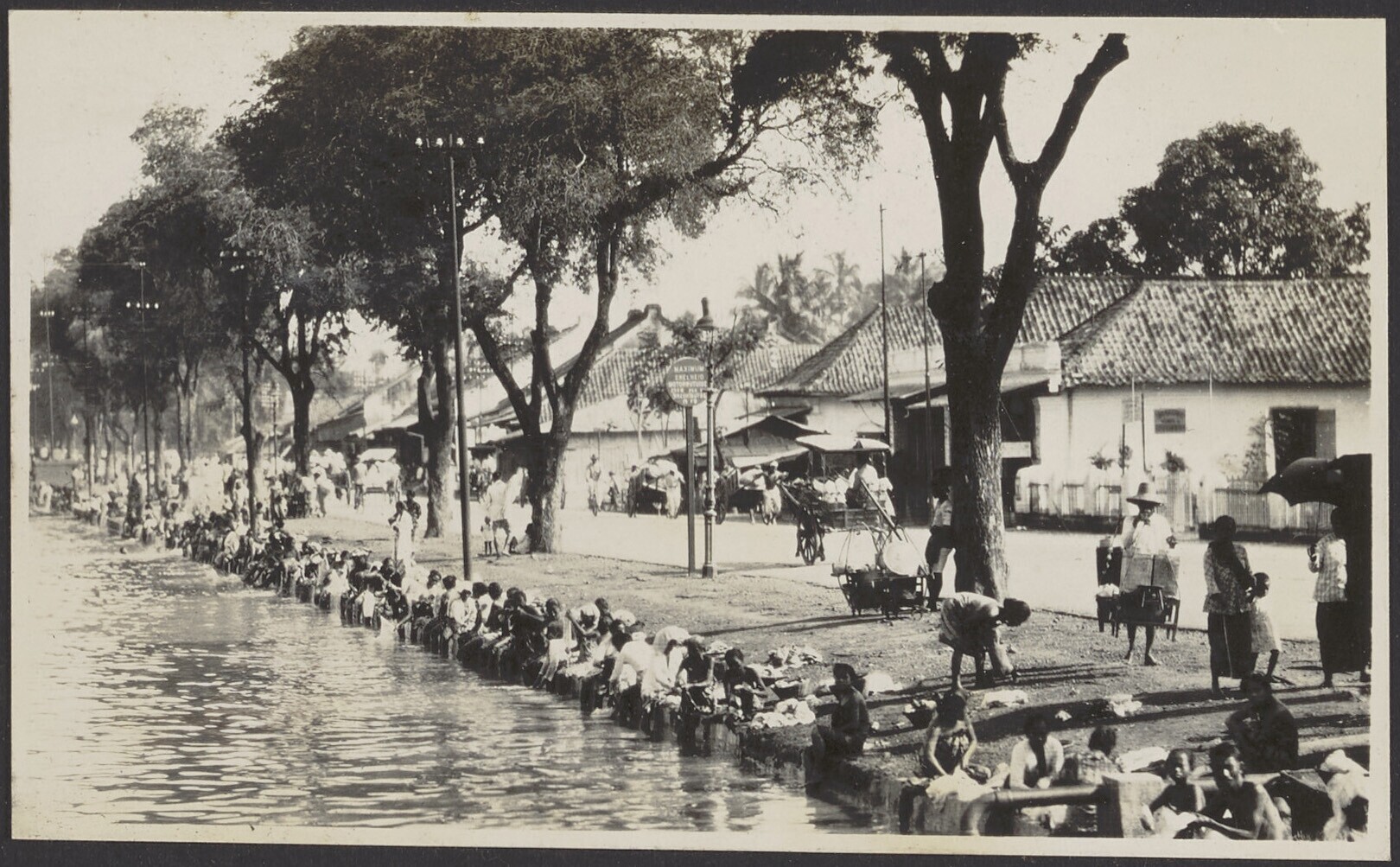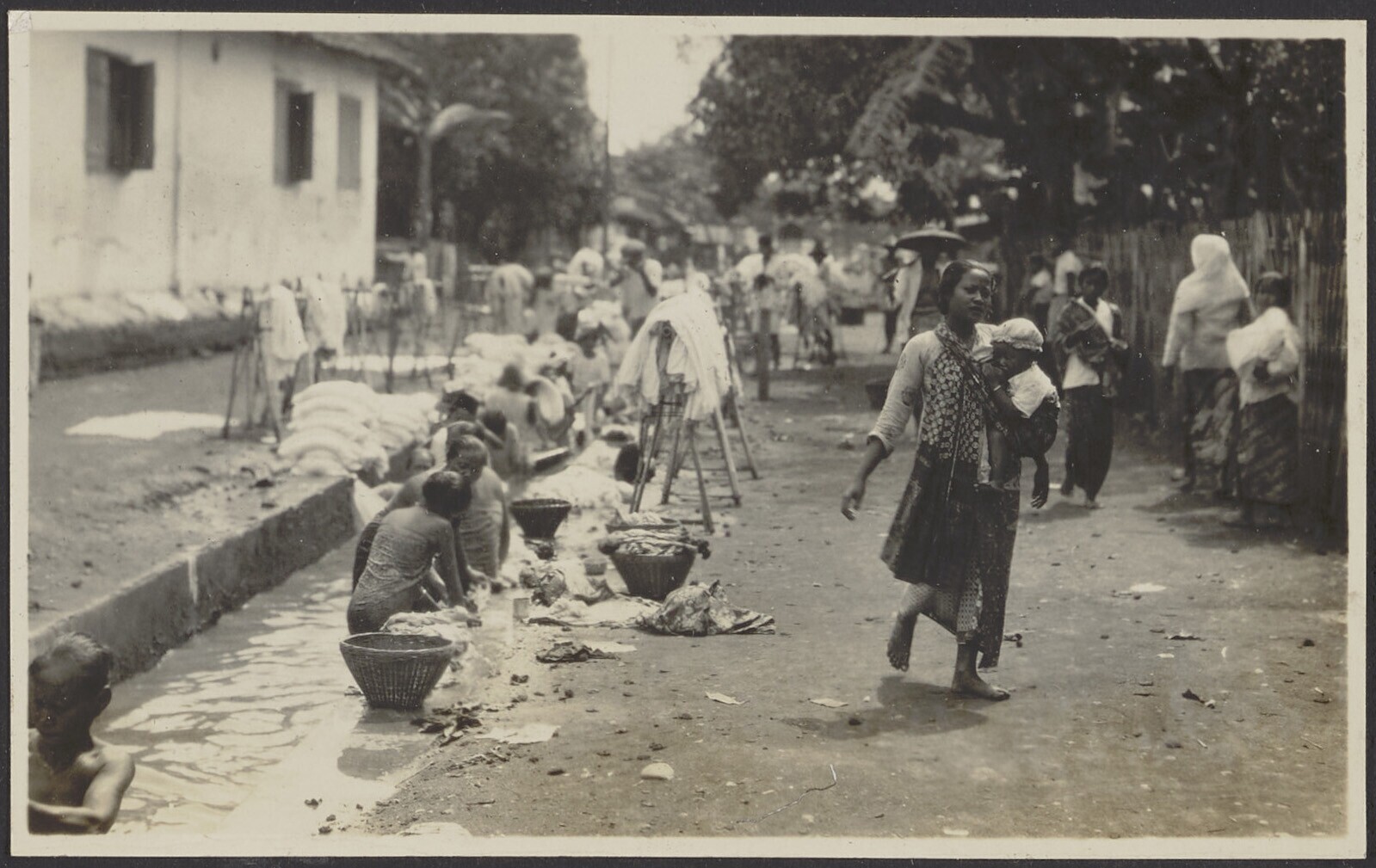 Javaanse vrouwen doen de was op straat in een afwate...