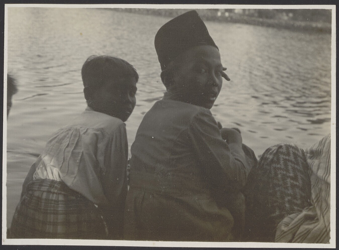 Javaanse matrozen staan op het dek van de ss. Saarbr...