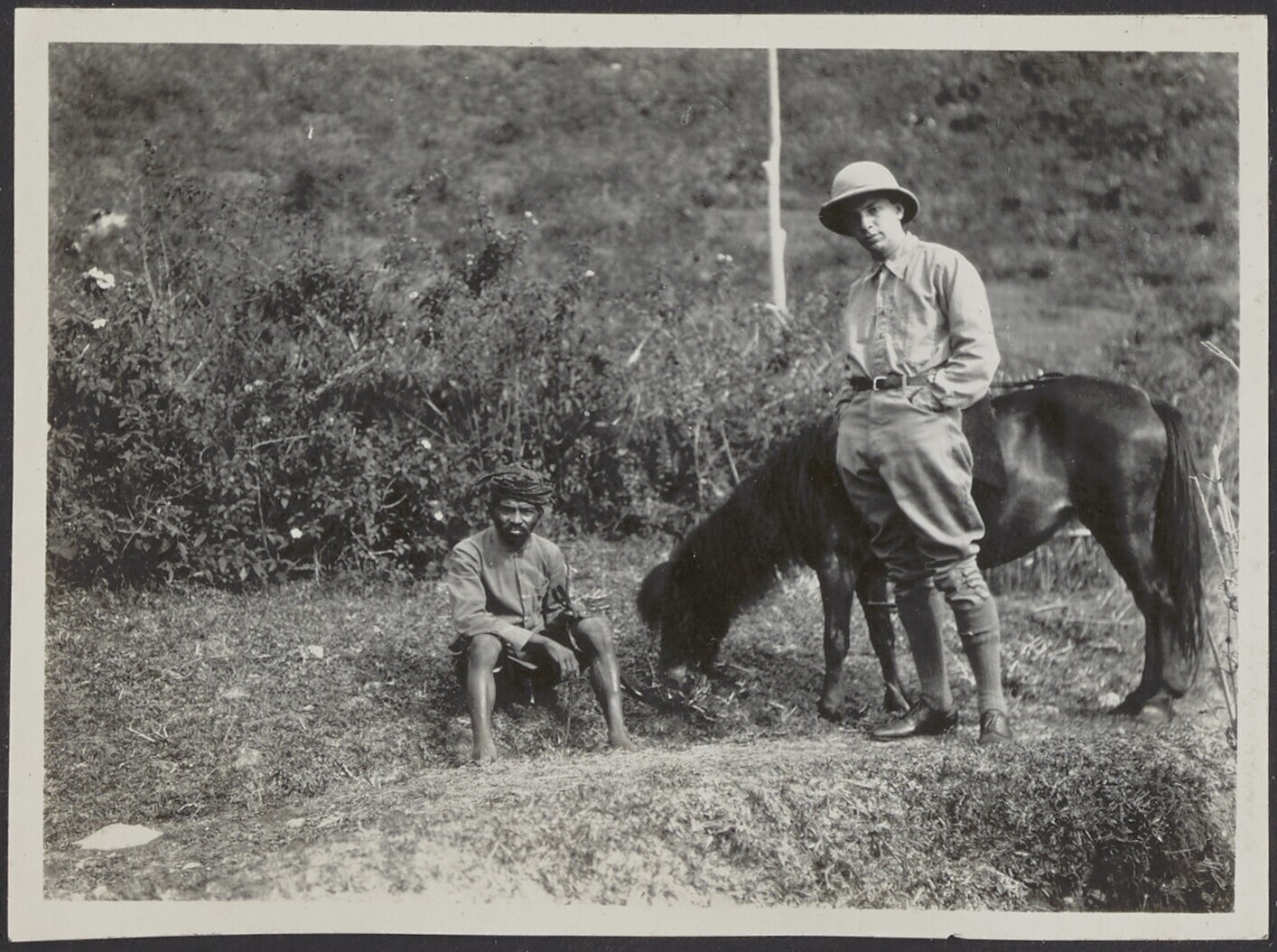 Europese man te paard met Javaanse paardenverzorger ...