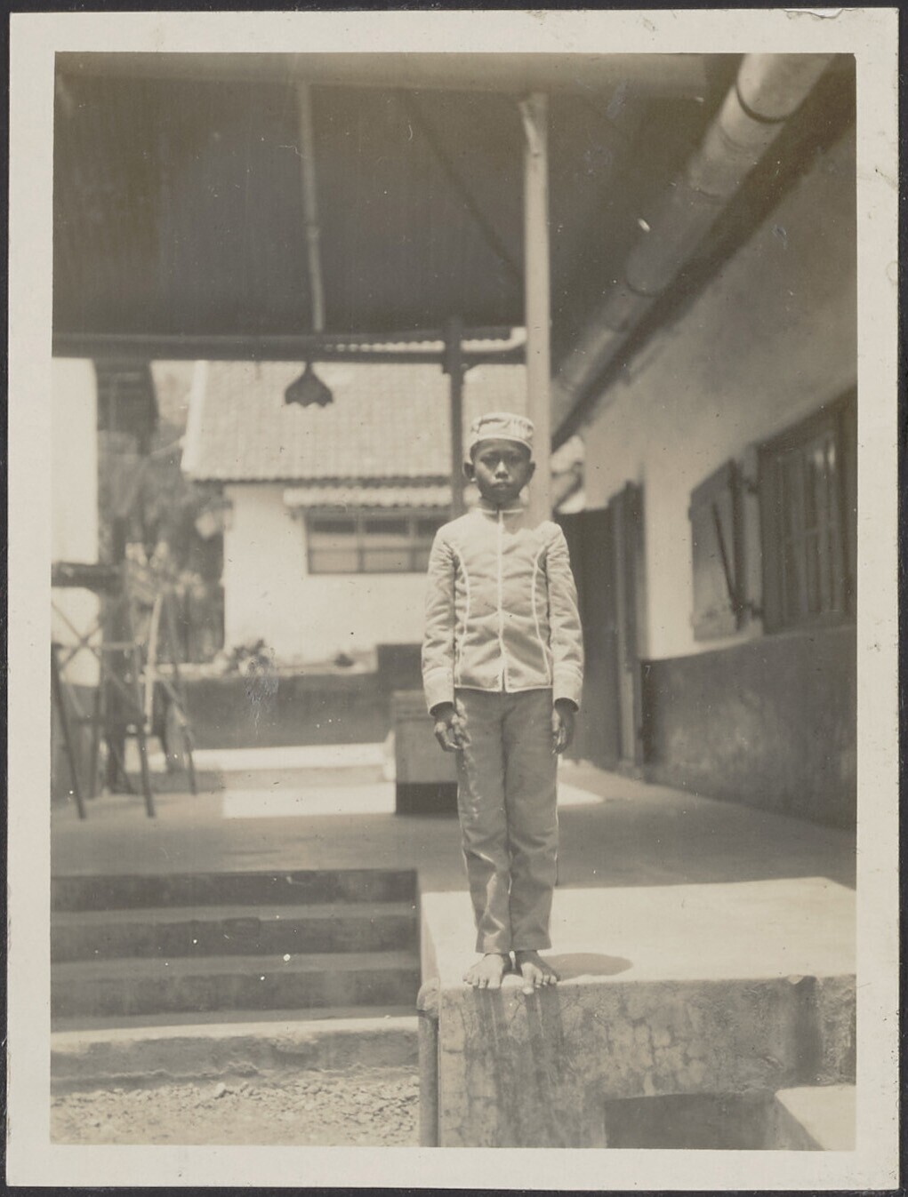 Op de veranda van een woning laat een Javaans jonget...