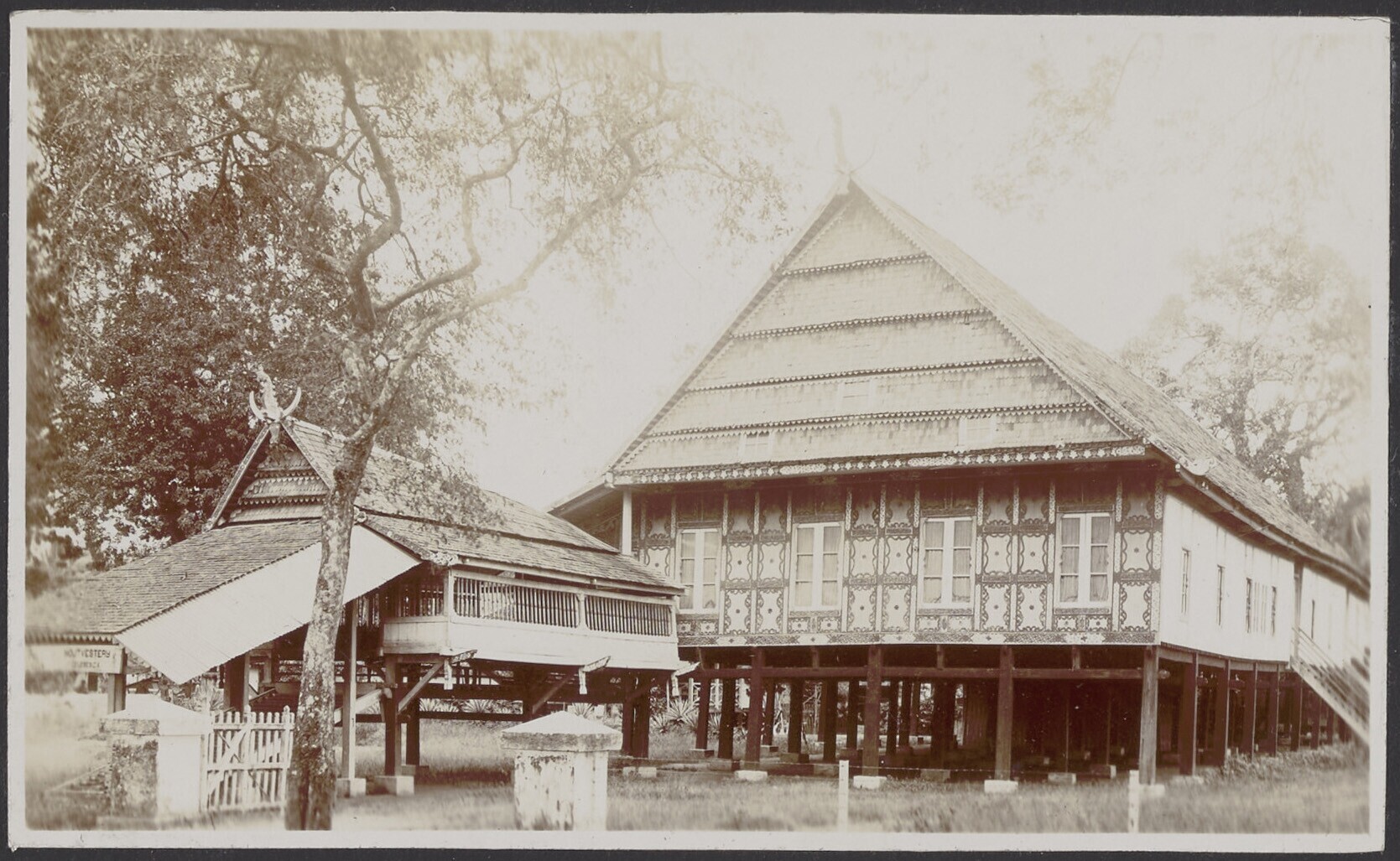 Groot huis met klein voorhuis op palen