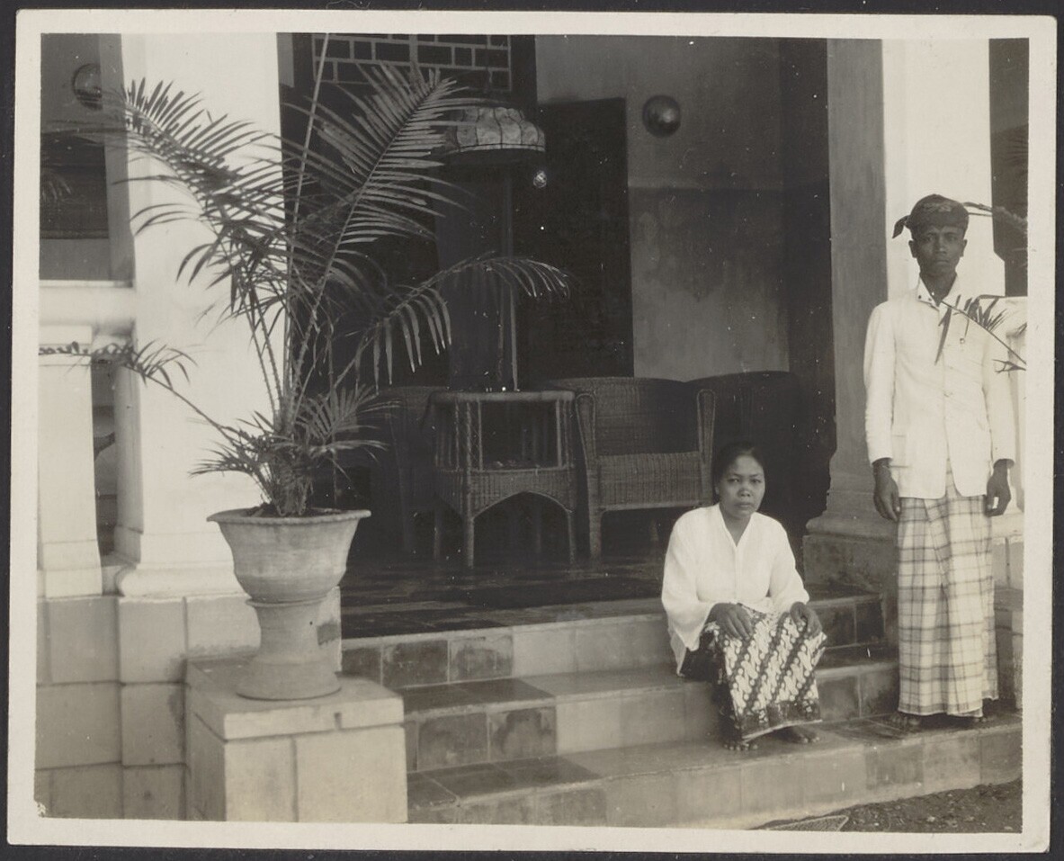 Javaanse man en vrouw voor de veranda bij een woning