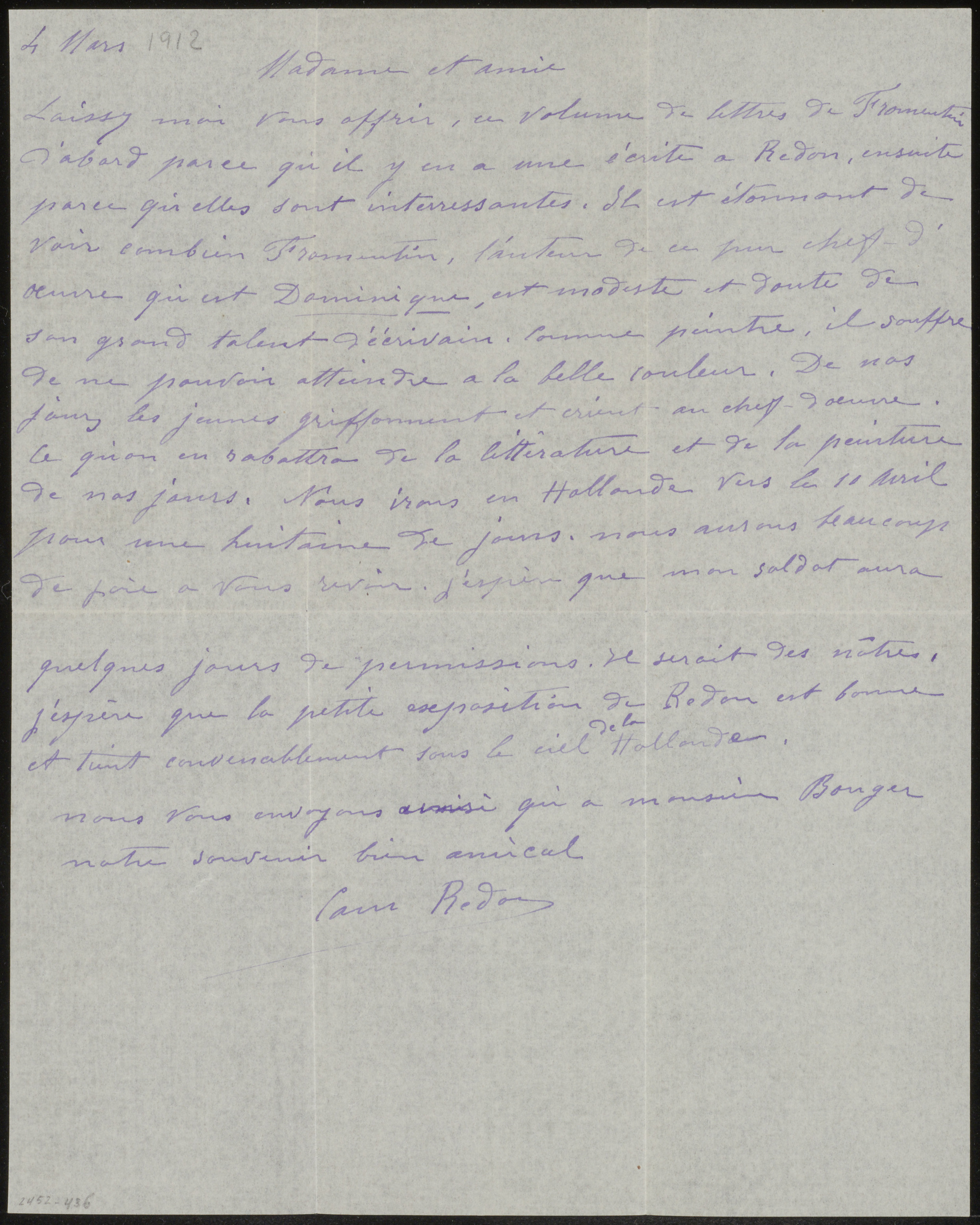 Brief aan Odilon Redon