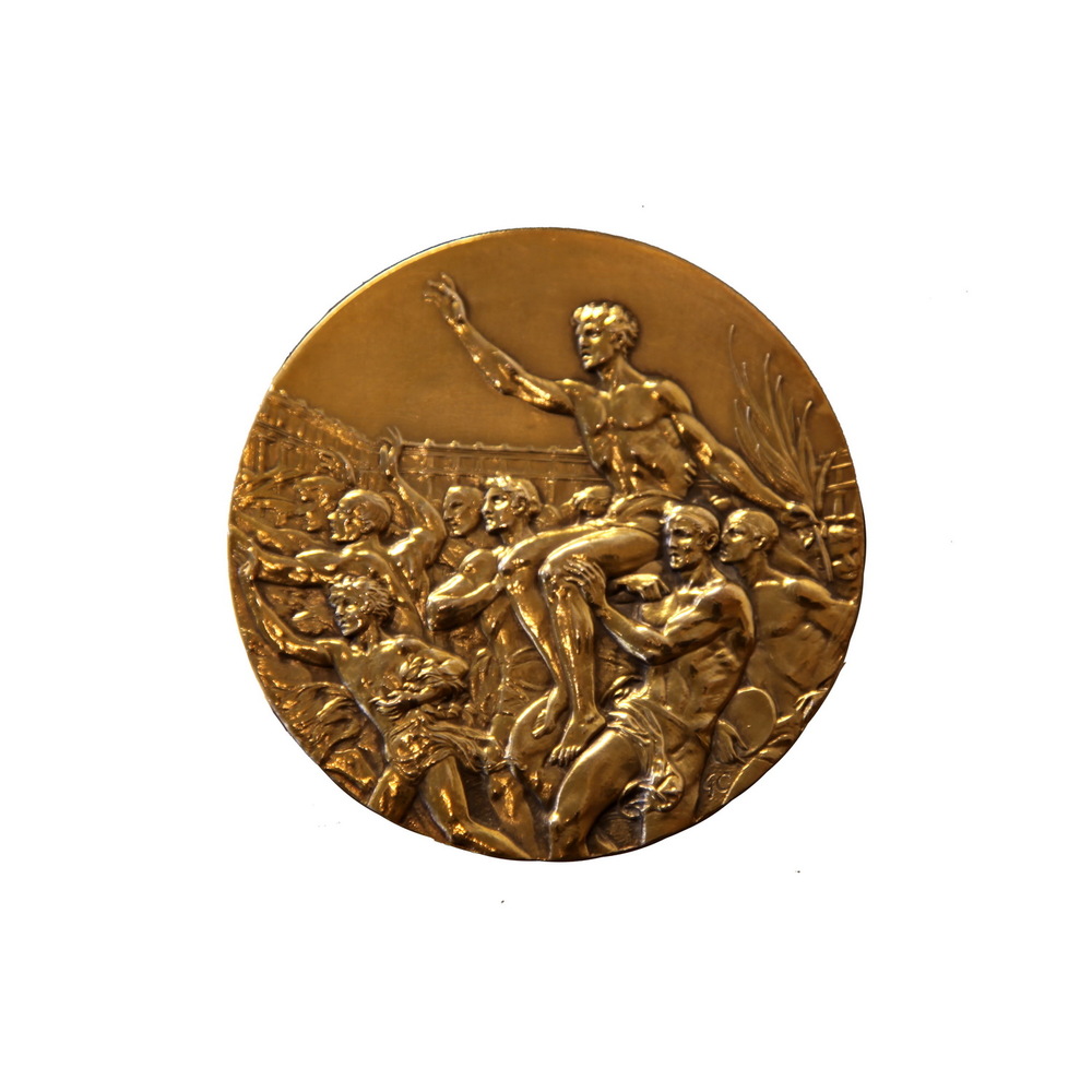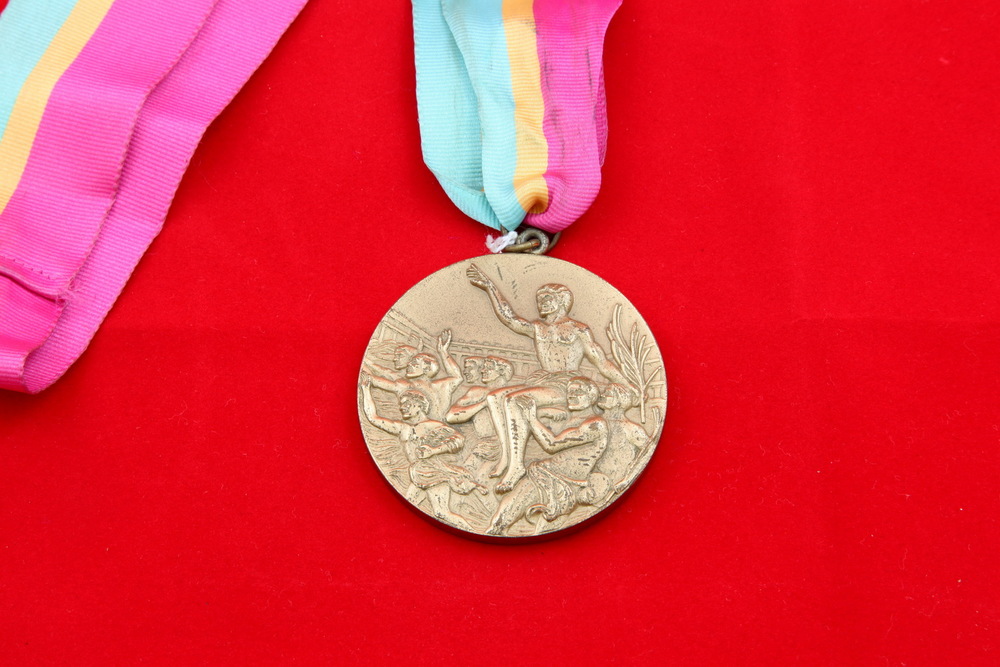 Gouden winnaarsmedaille van wielrenner Bernard Leene...