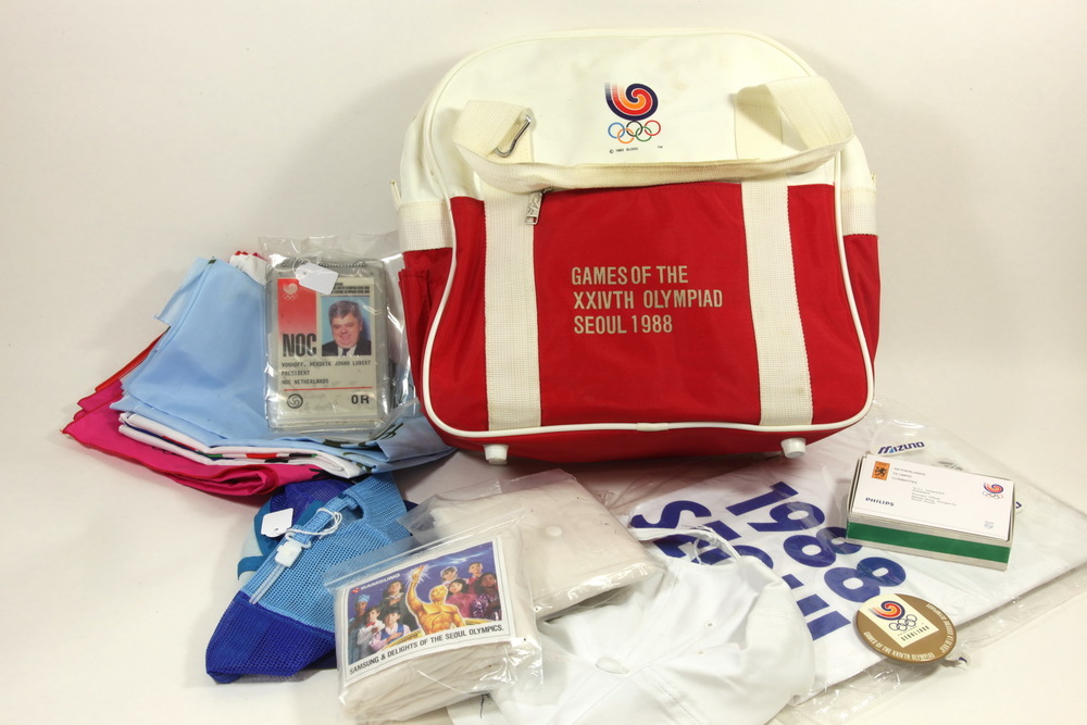 Tas met 'goodies' van Henk Vonhoff toenmalig NOC-voo...