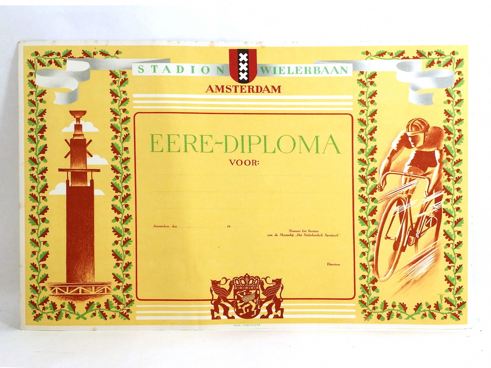 Erediploma Wielerbaan Olympisch Stadion Amsterdam, S...
