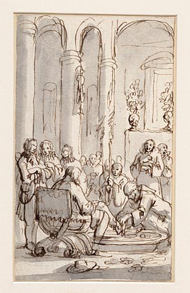 Voetwassing der reizigers in een klooster te Jeruzalem