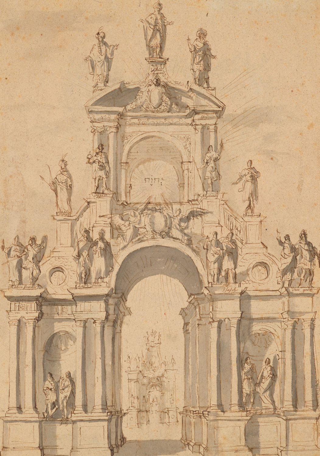 Triomfpoort met beelden van de 12 stammen van Israël...