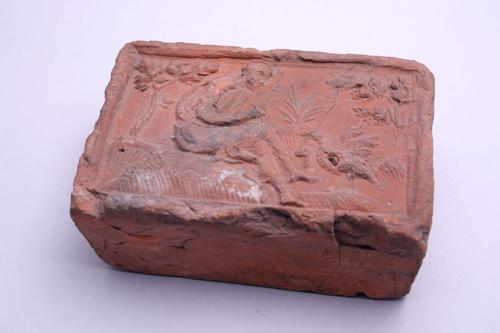 Terracotta haardtegel uit Antwerpen met reliëfdecoratie