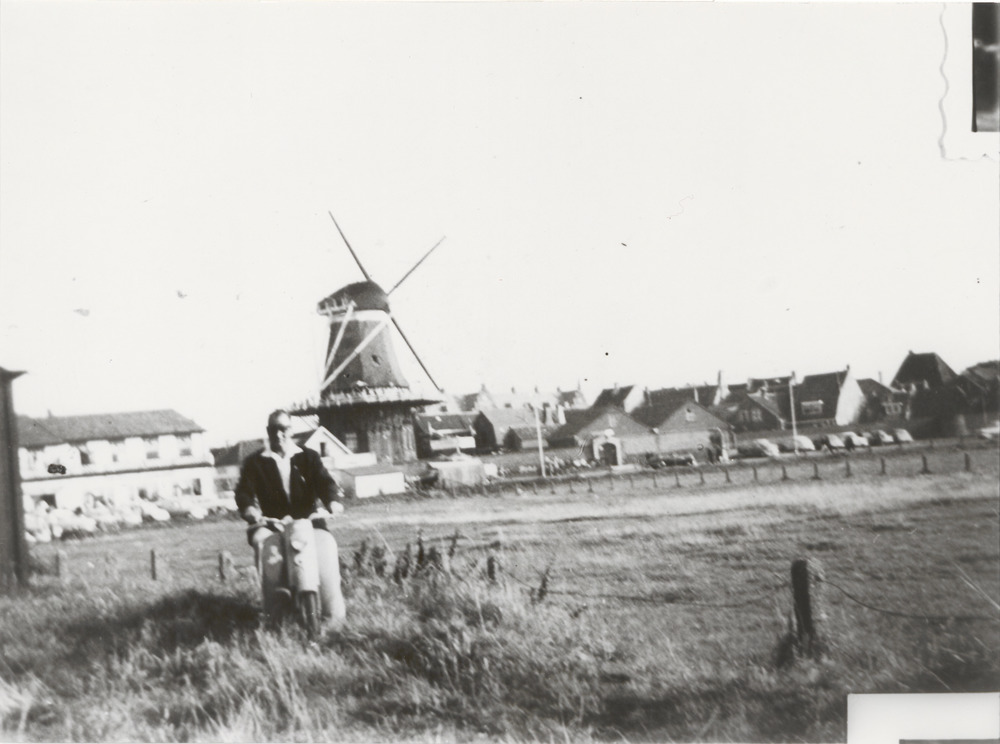 Lid van de Solexclub uit Tiel ergens in een dorp met...