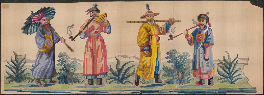 De voorstelling op dit borduurpatroon bestaat uit vi...