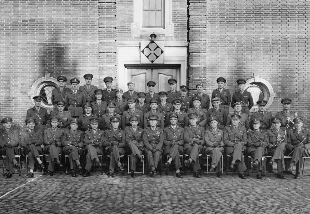 Groepsfoto staf 4 Divisie voor het stafgebouw op de ...