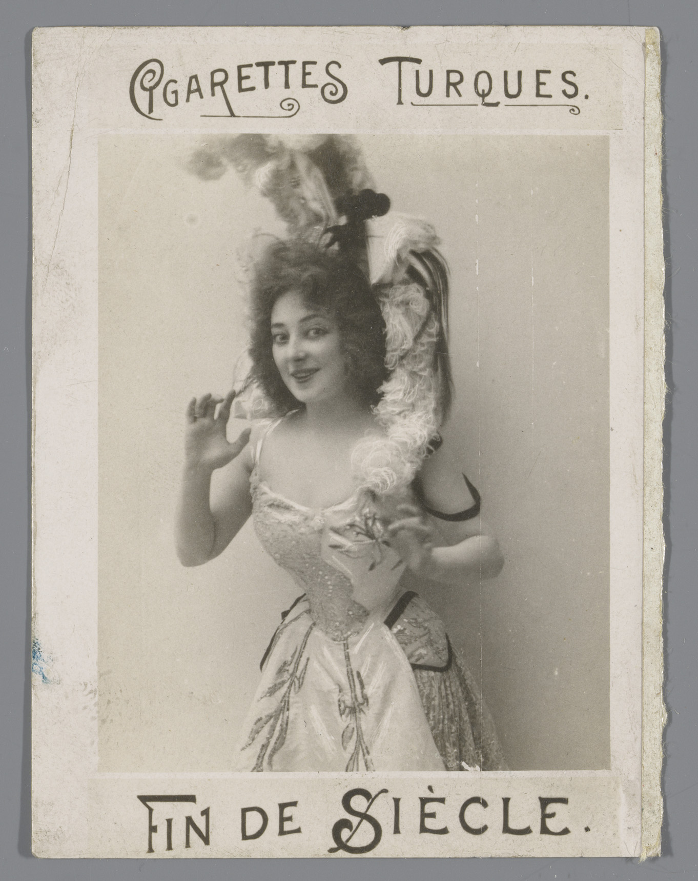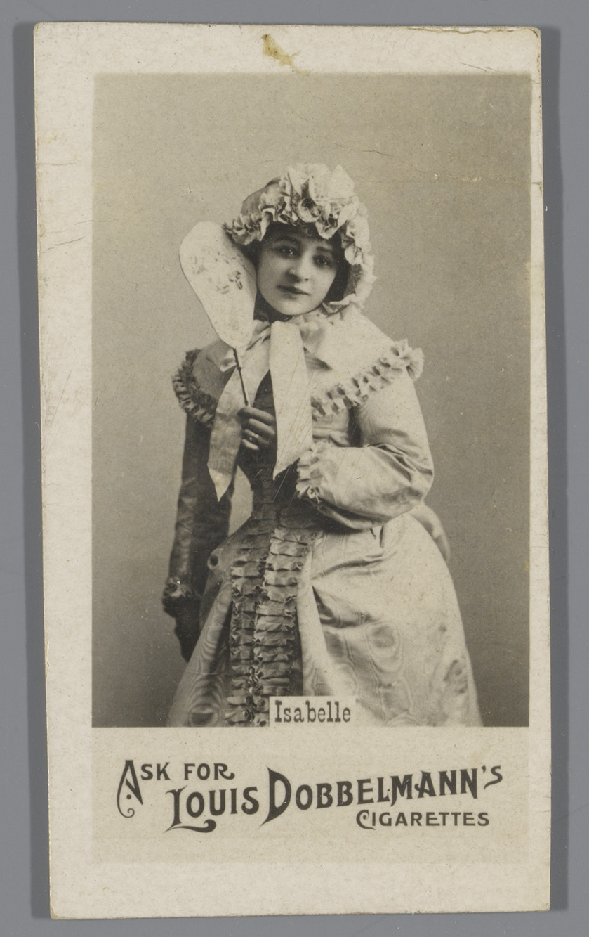 Portret van Isabelle met waaier in haar hand, reclam...