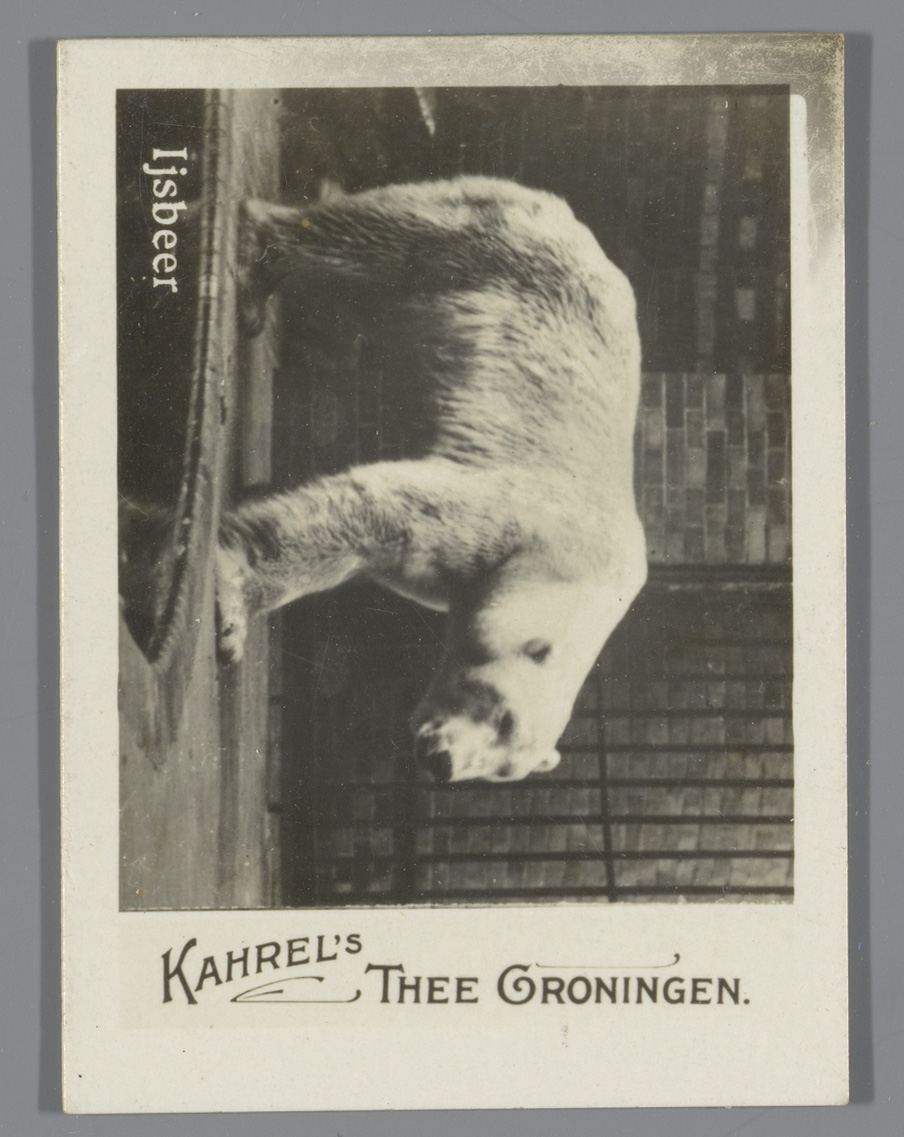 IJsbeer in een kooi, reclame voor Kahrel's Thee Gron...