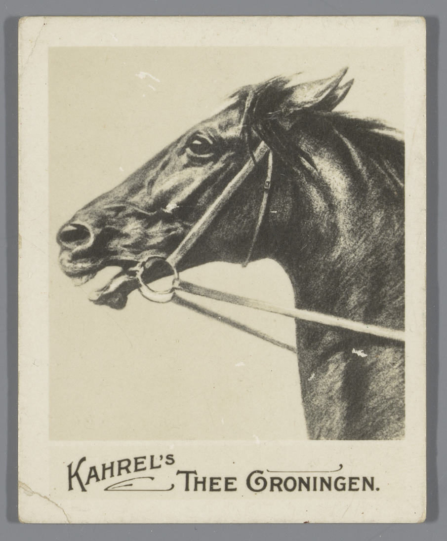 Hoofd van een paard, reclame voor Kahrel's Thee Gron...