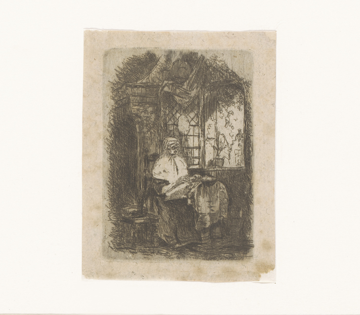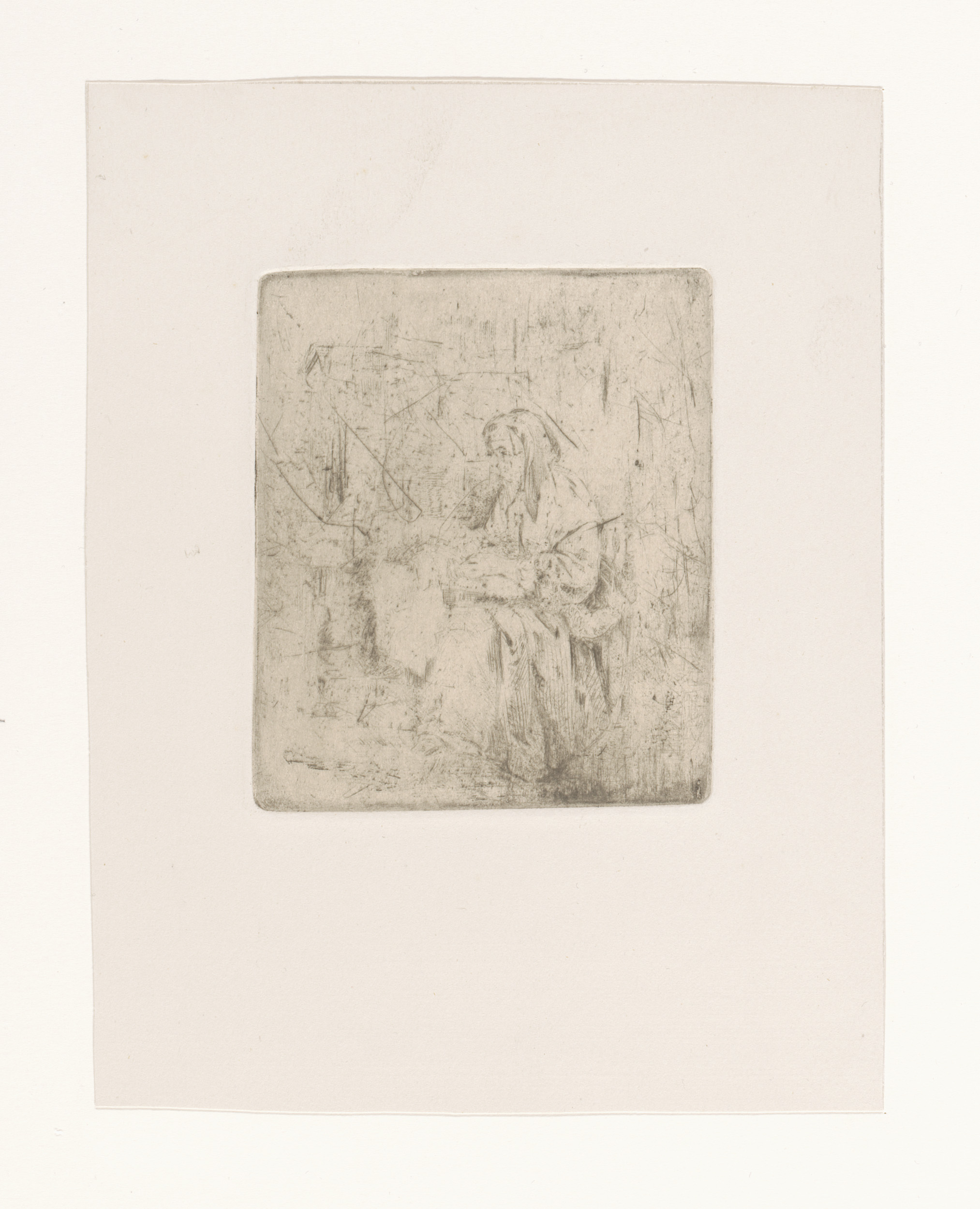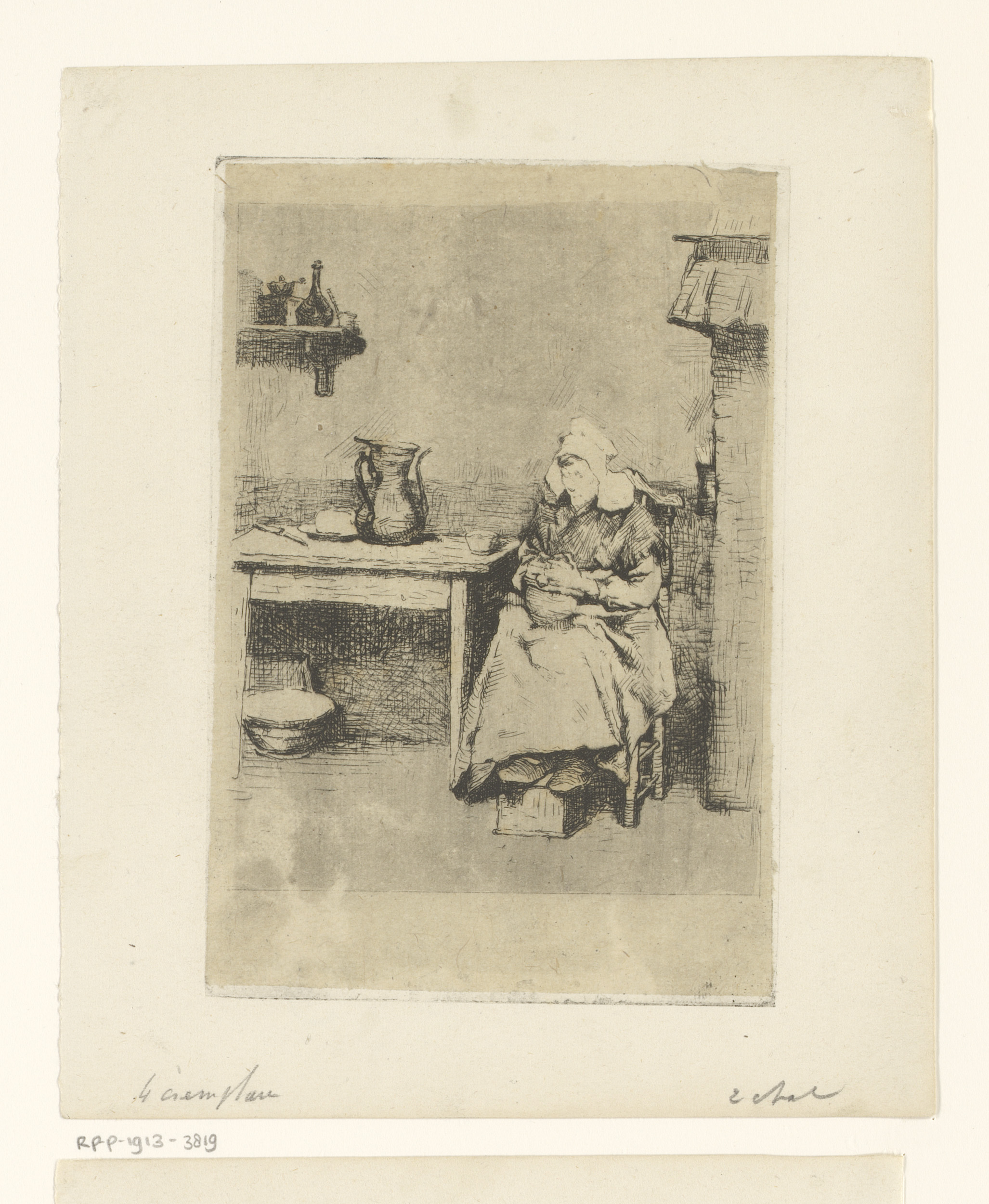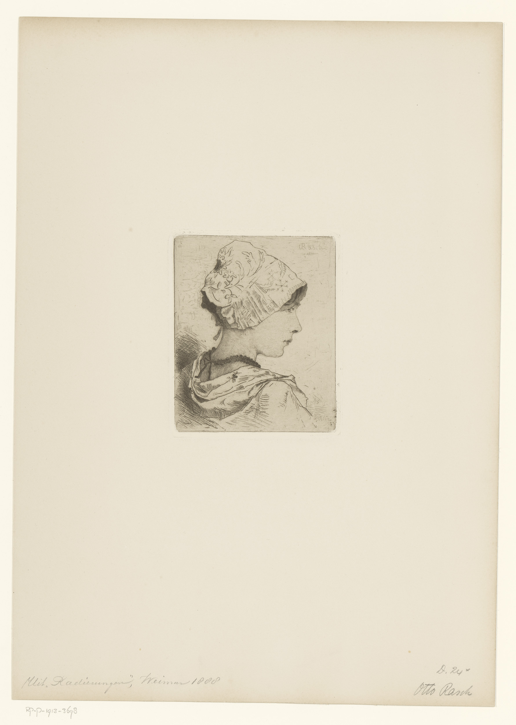 Vrouw in Zeeuwse klederdracht met een gezicht op Vli...