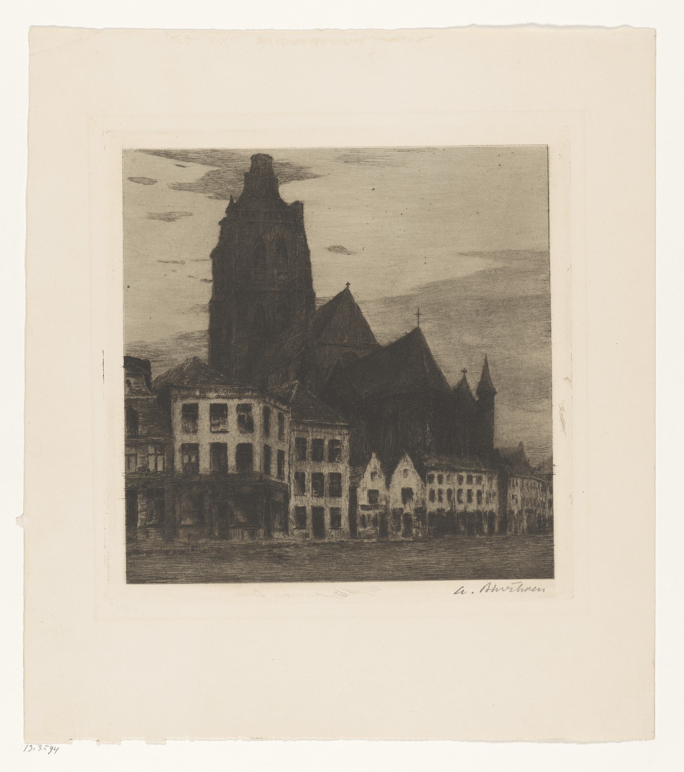 Gezicht op de toren van de Nieuwe Kerk te Haarlem